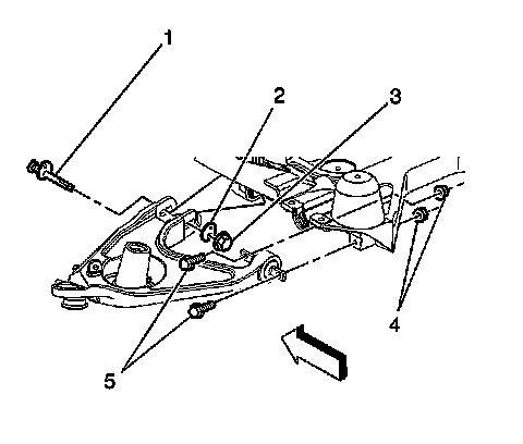 2. Loosen rear lower control arm mounting nuts (3, 4).