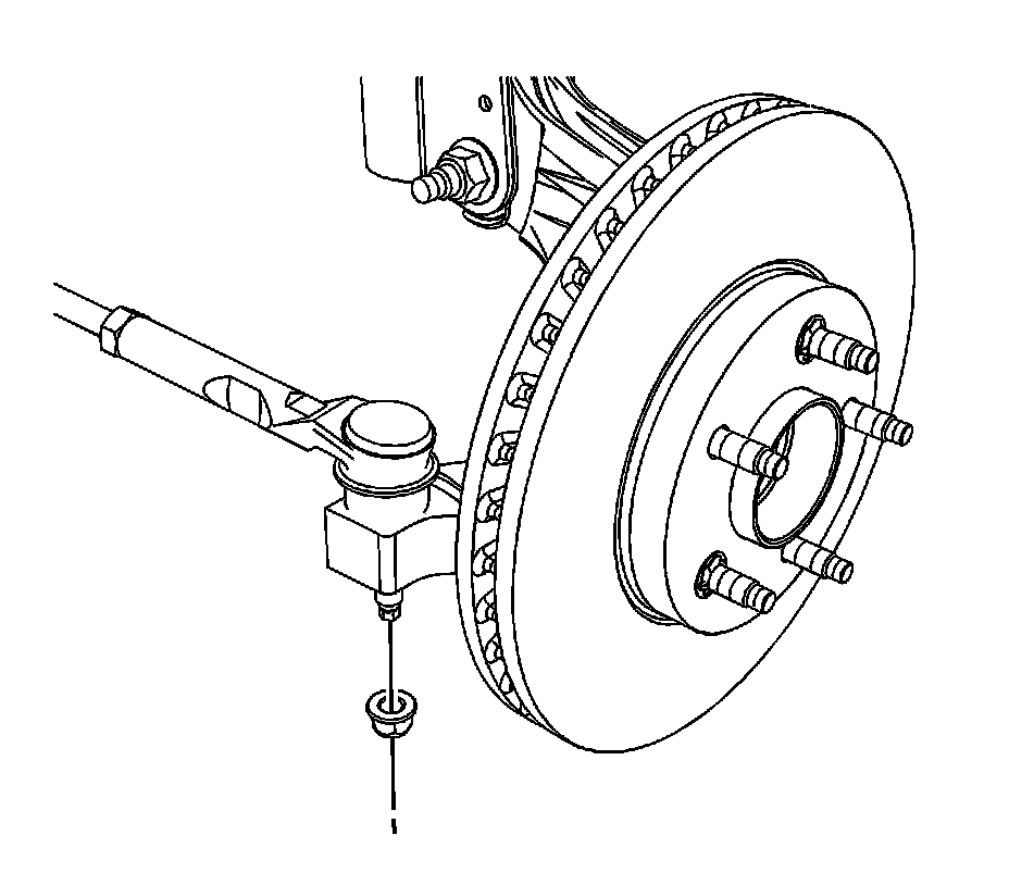 Important: Do not free the rack and pinion outer tie rod from the steering knuckle by use of a pickle fork or a wedge type tool. Damage to the seal or bushing may result.