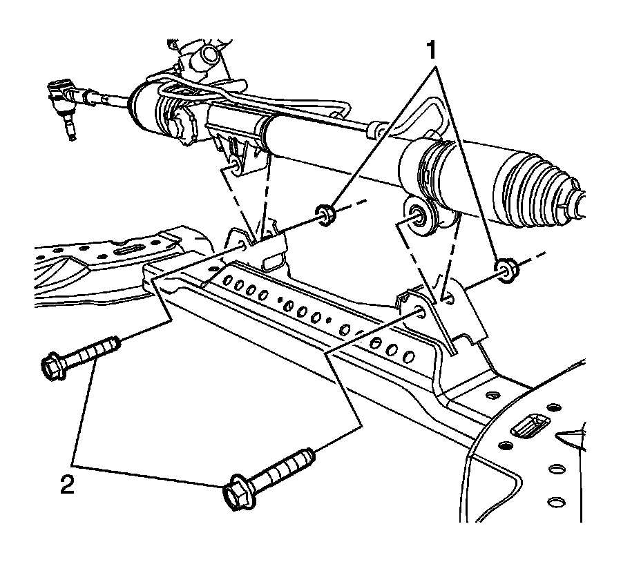 2. Install the steering gear nuts (1) and bolts (2).