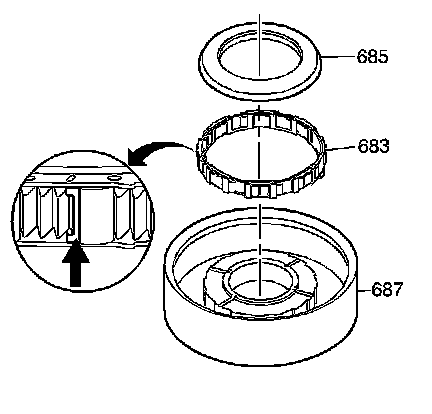 3. Install the thrust bearing (685) onto the 1-2 support drum (687). Press down with hand pressure only.