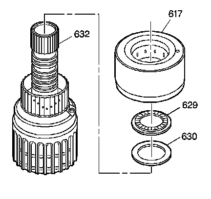 9. Remove the input clutch housing thrust bearing (629) from the input housing.