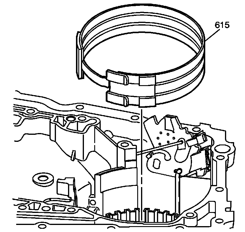 Tilt the band in order to disengage the band from the anchor pin in the case. Remove the reverse band assembly (615).