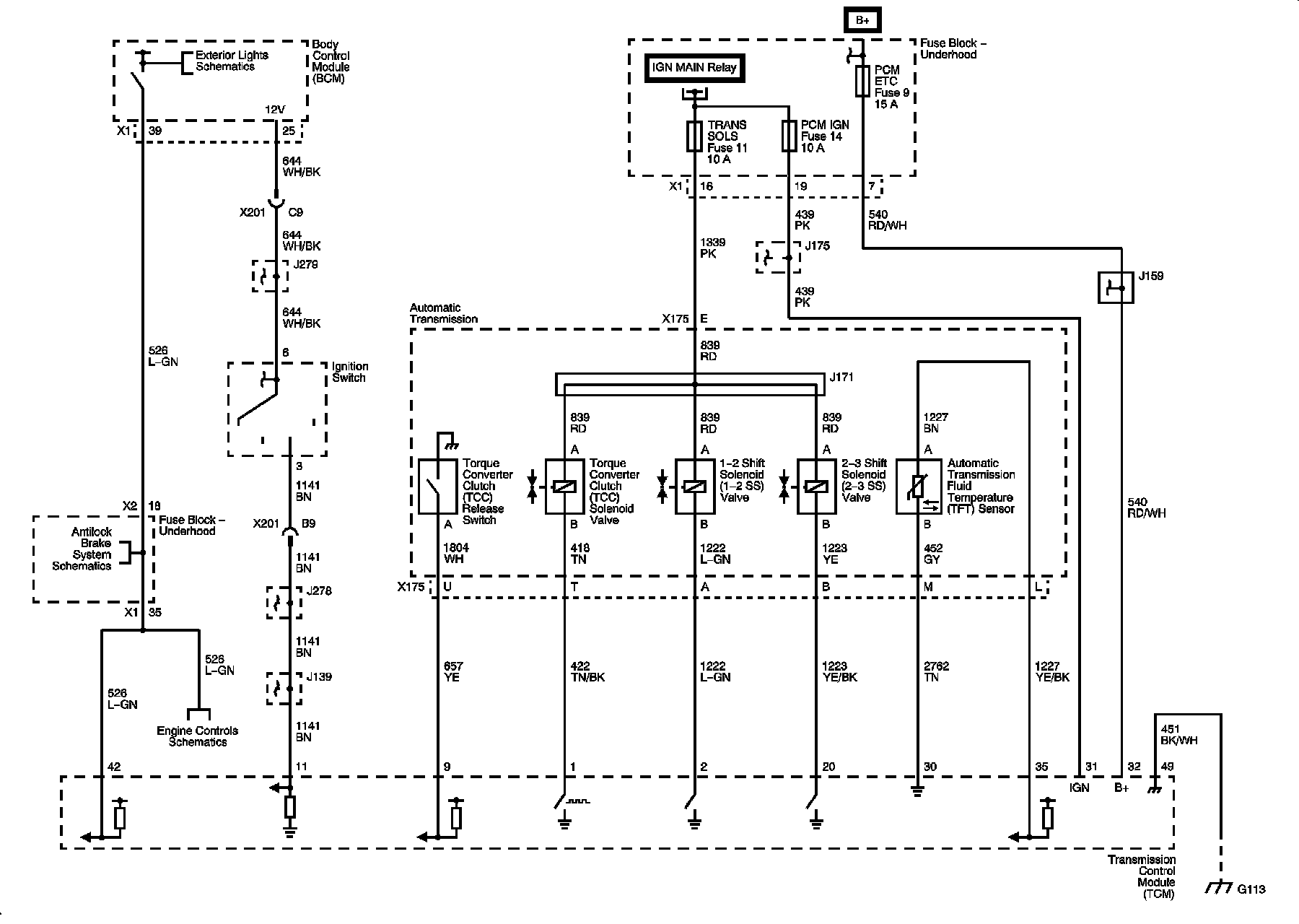 Ground, Power, Shift Solenoids, Stop Lamp Switch, TCC, and TFT