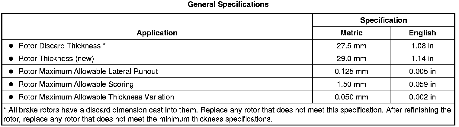 Disc Brake Component Specifications