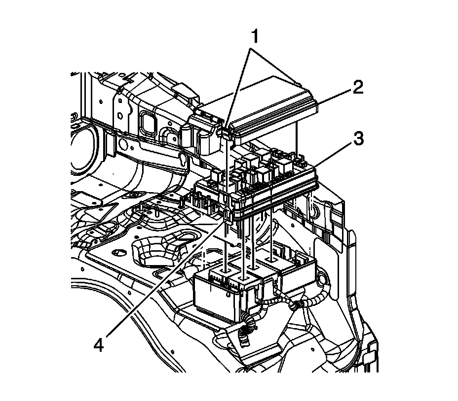 3. Remove the fuse relay center bolts (3) and remove the fuse relay center from the junction block bracket.
