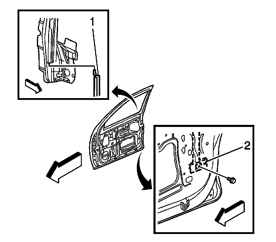 1. Remove the front door trim panel. Refer to Front Side Door Trim Panel Replacement (Service and Repair).
