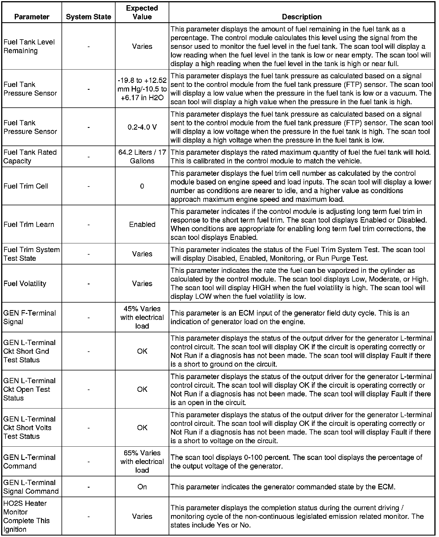 The Engine Control Module Scan Tool Data List contains all engine-related parameters that are available on the scan tool. The list is arranged in alphabetical order. A given parameter may appear in any one of the data lists, and in some cases may appear more than once, or in more than one data list in order to group certain related parameters together.