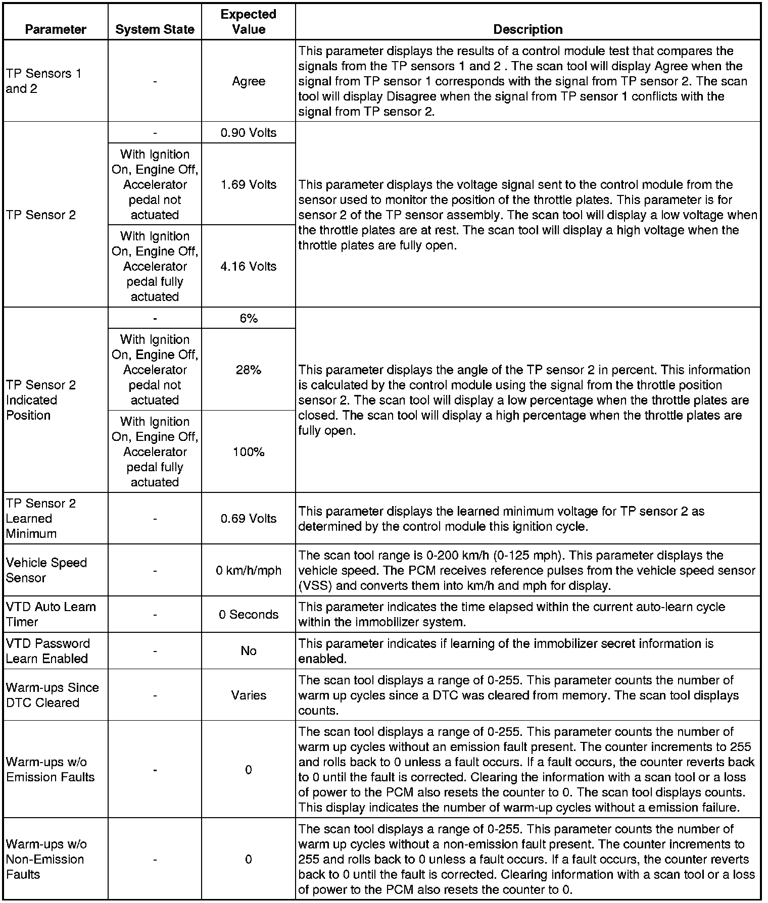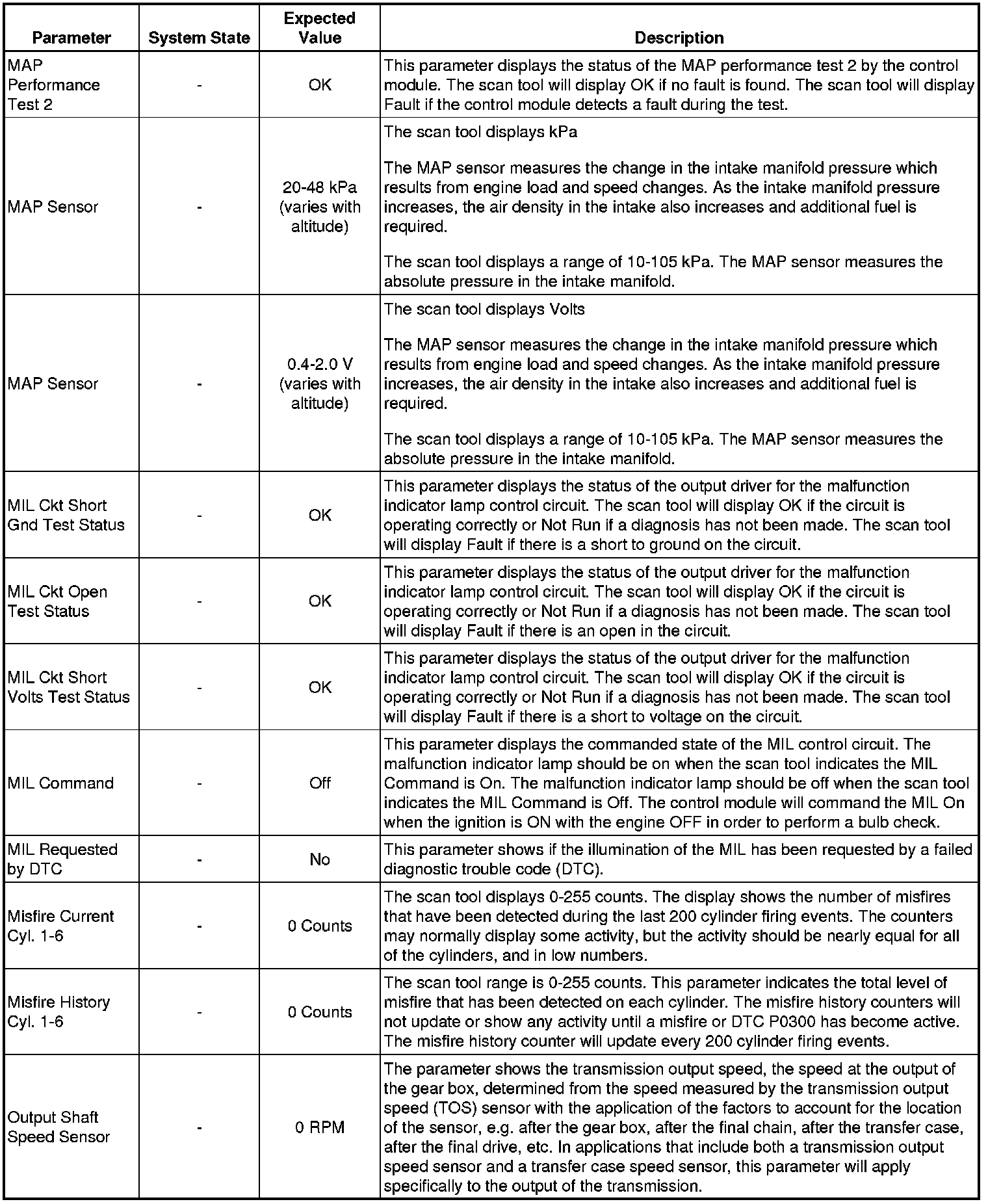 Only the parameters listed below are referenced in this service manual for use in diagnosis. If all values are within the typical range described below, refer to Symptoms - Engine Controls (- Symptoms - Engine Controls) for the 2.9L engine or Symptoms - Engine Controls (- Symptoms - Engine Controls) for the 3.7L engine for diagnosis.