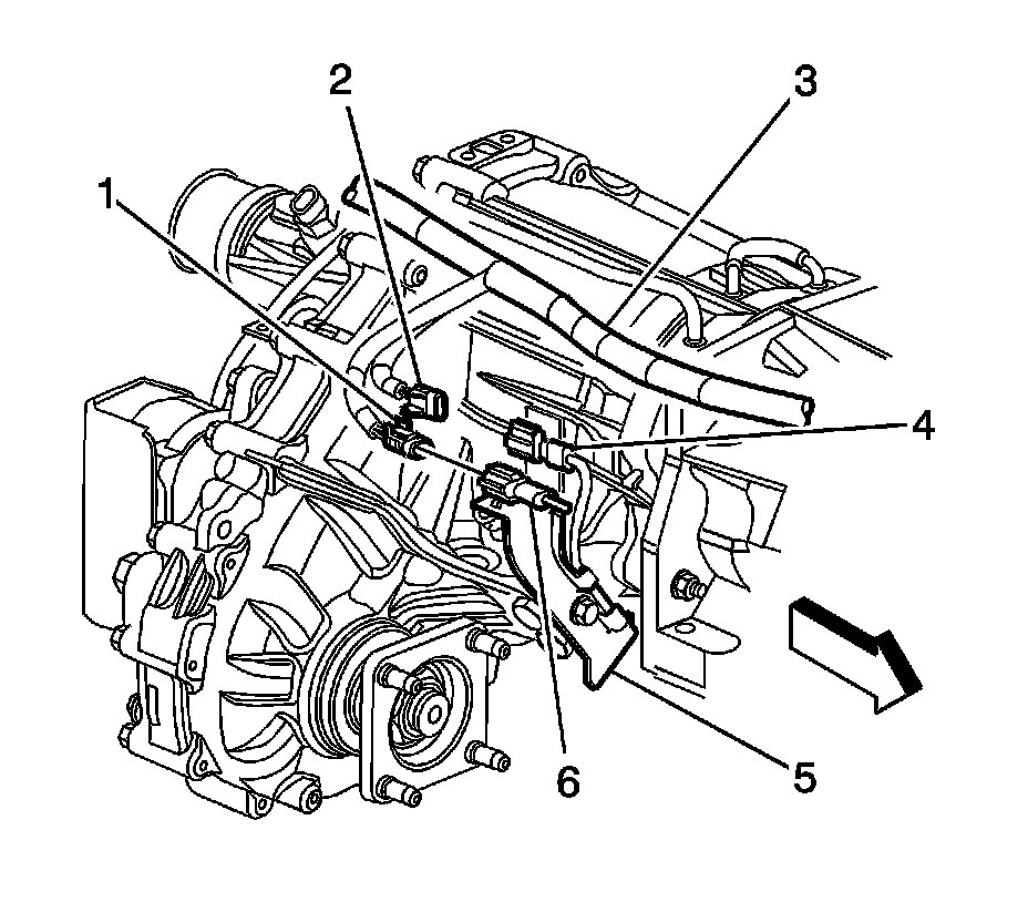 2. Disconnect the brown engine wiring harness electrical connector (1) from the brown NEUTRAL switch electrical connector (6).