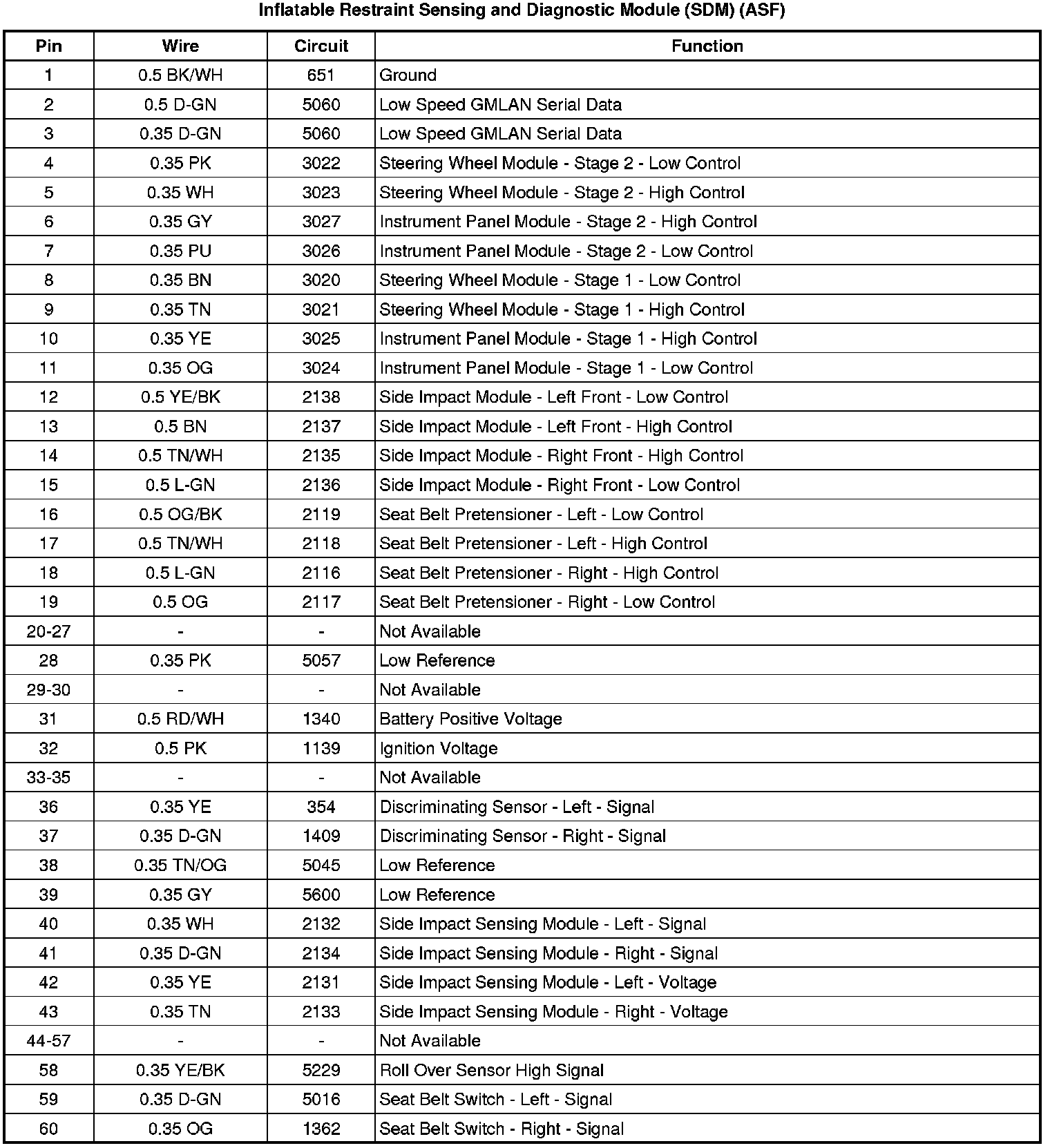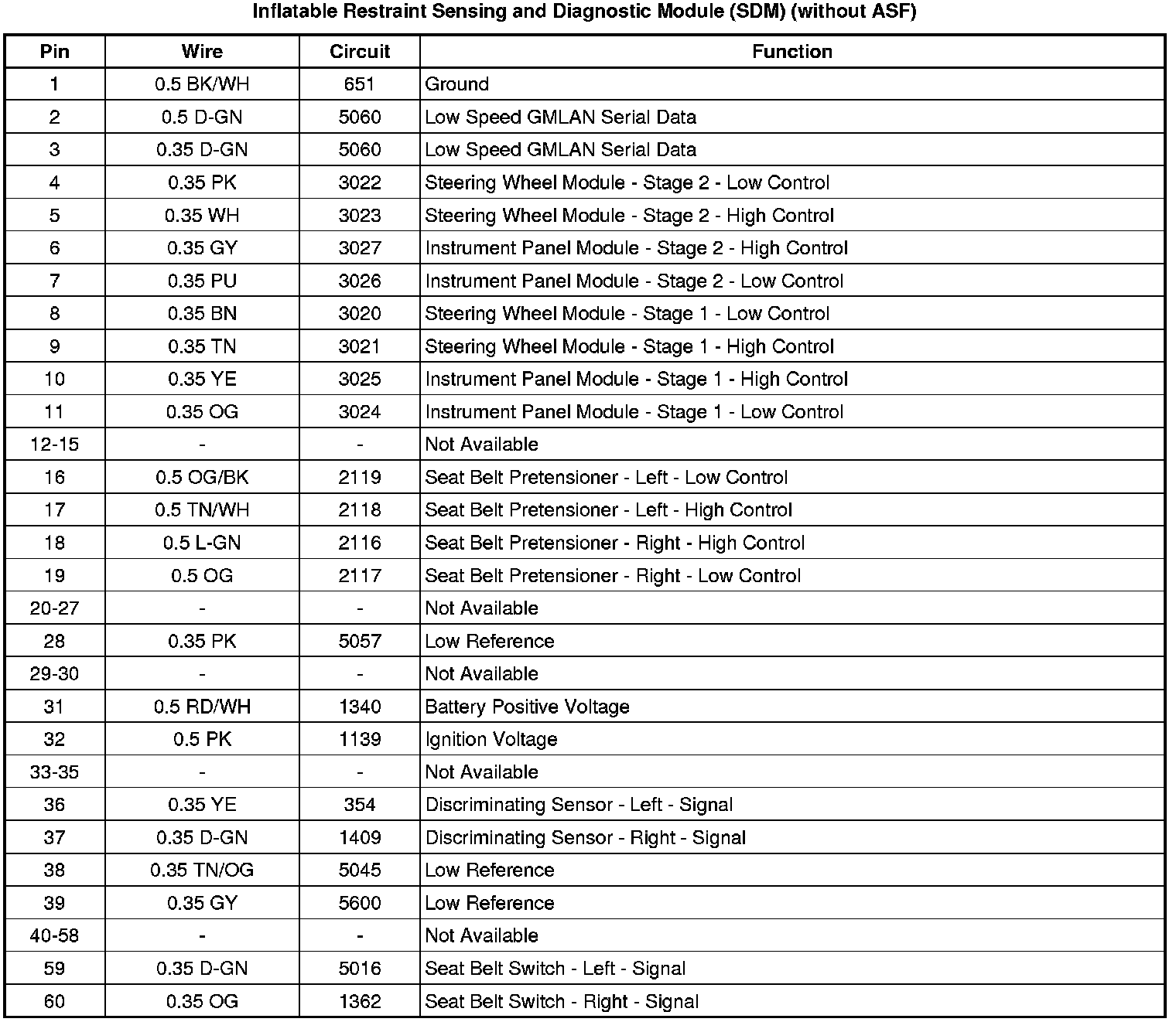 Inflatable Restraint Sensing and Diagnostic Module (SDM) (without ASF)