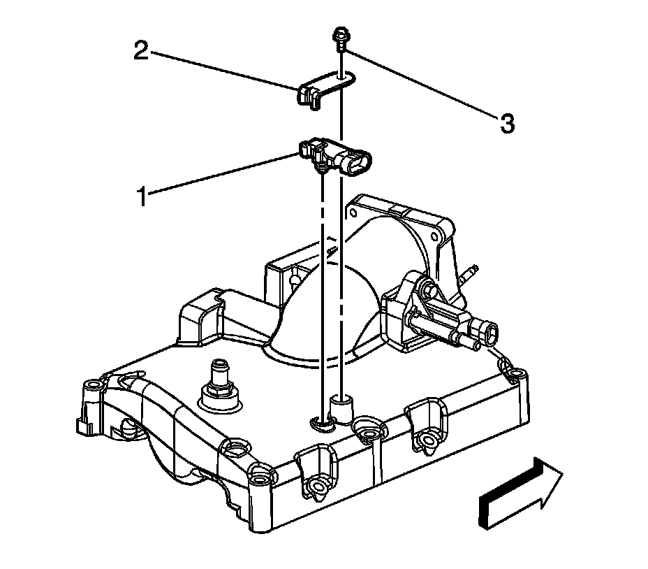 2. Remove the MAP sensor retaining bolt (3) and bracket (2).