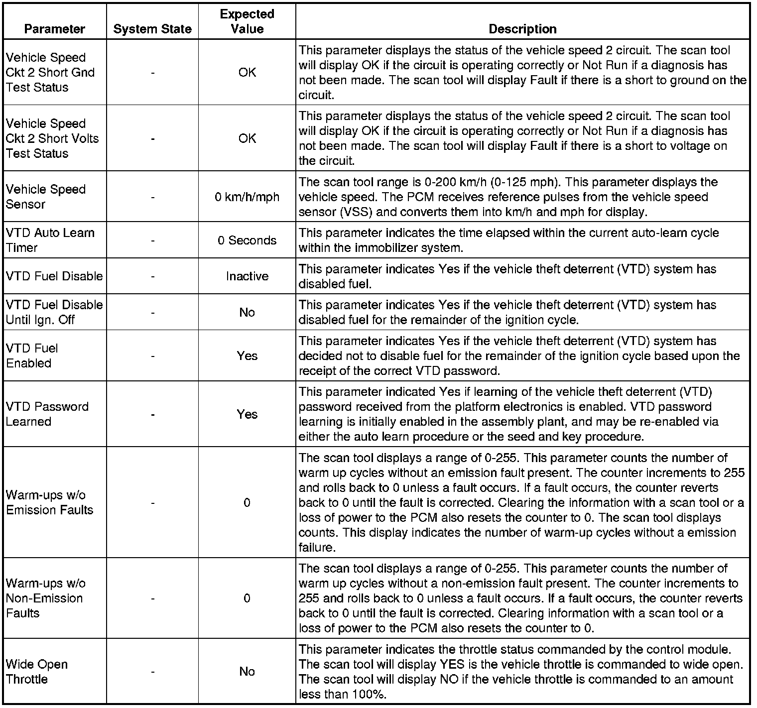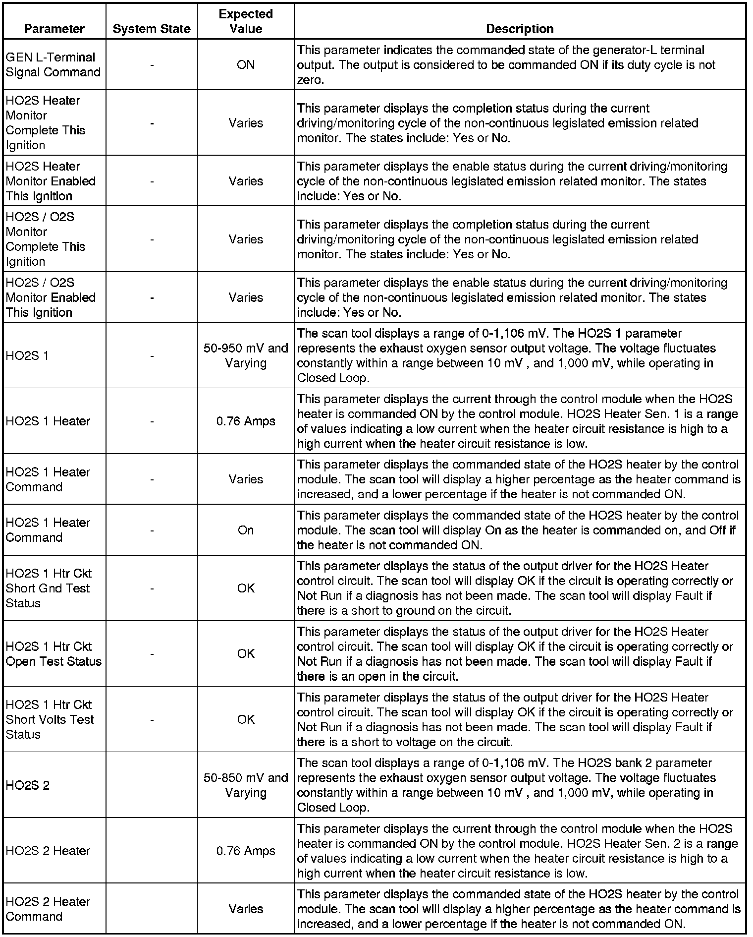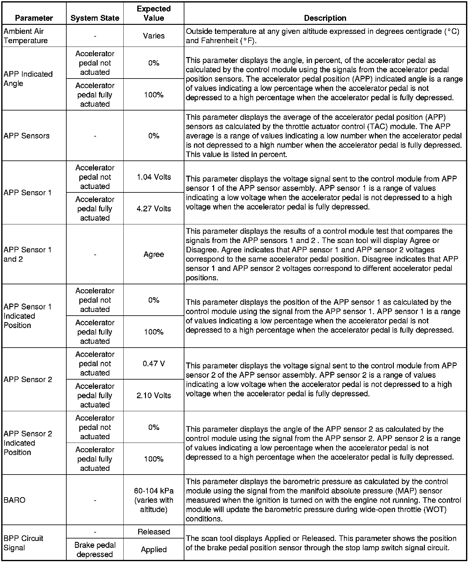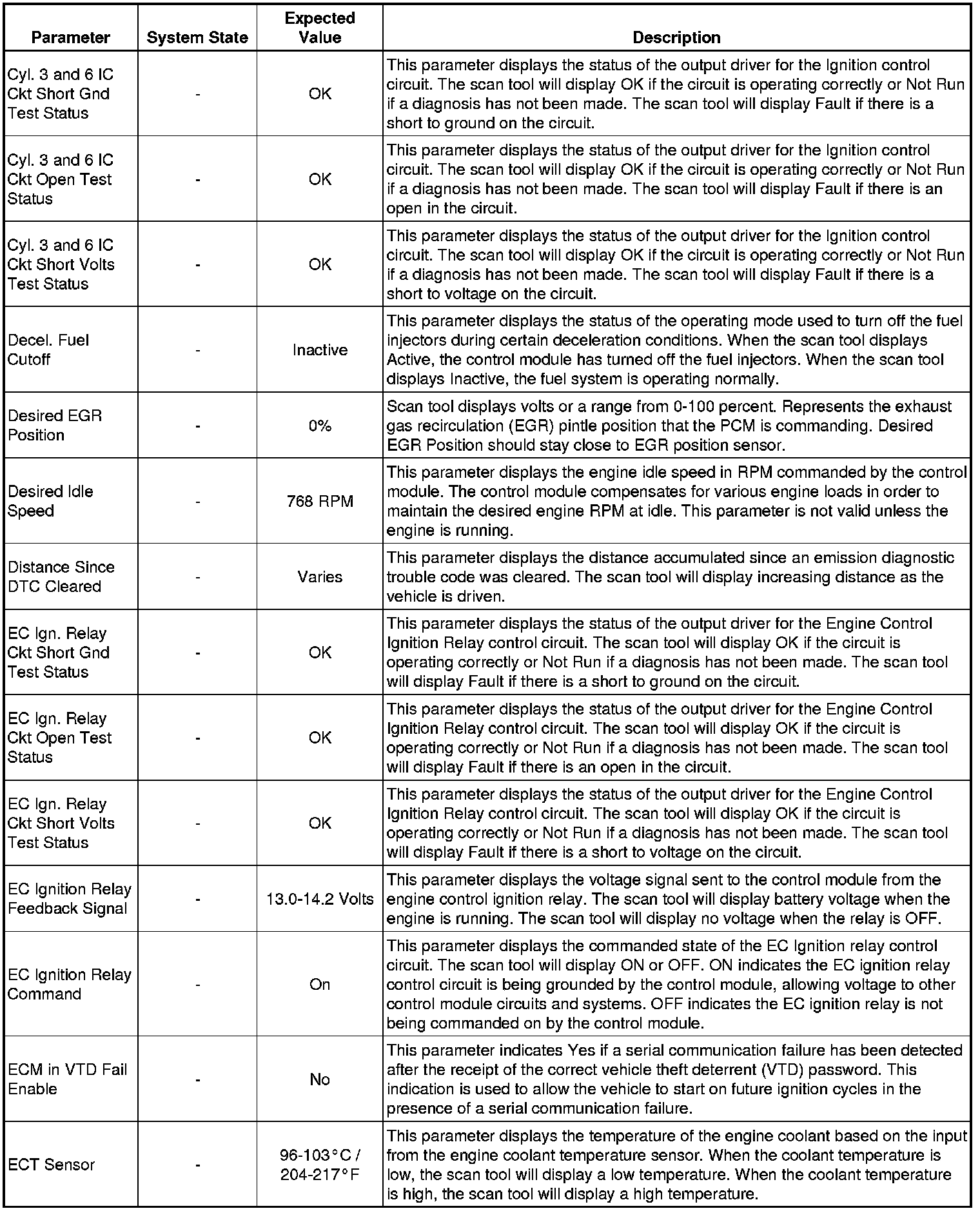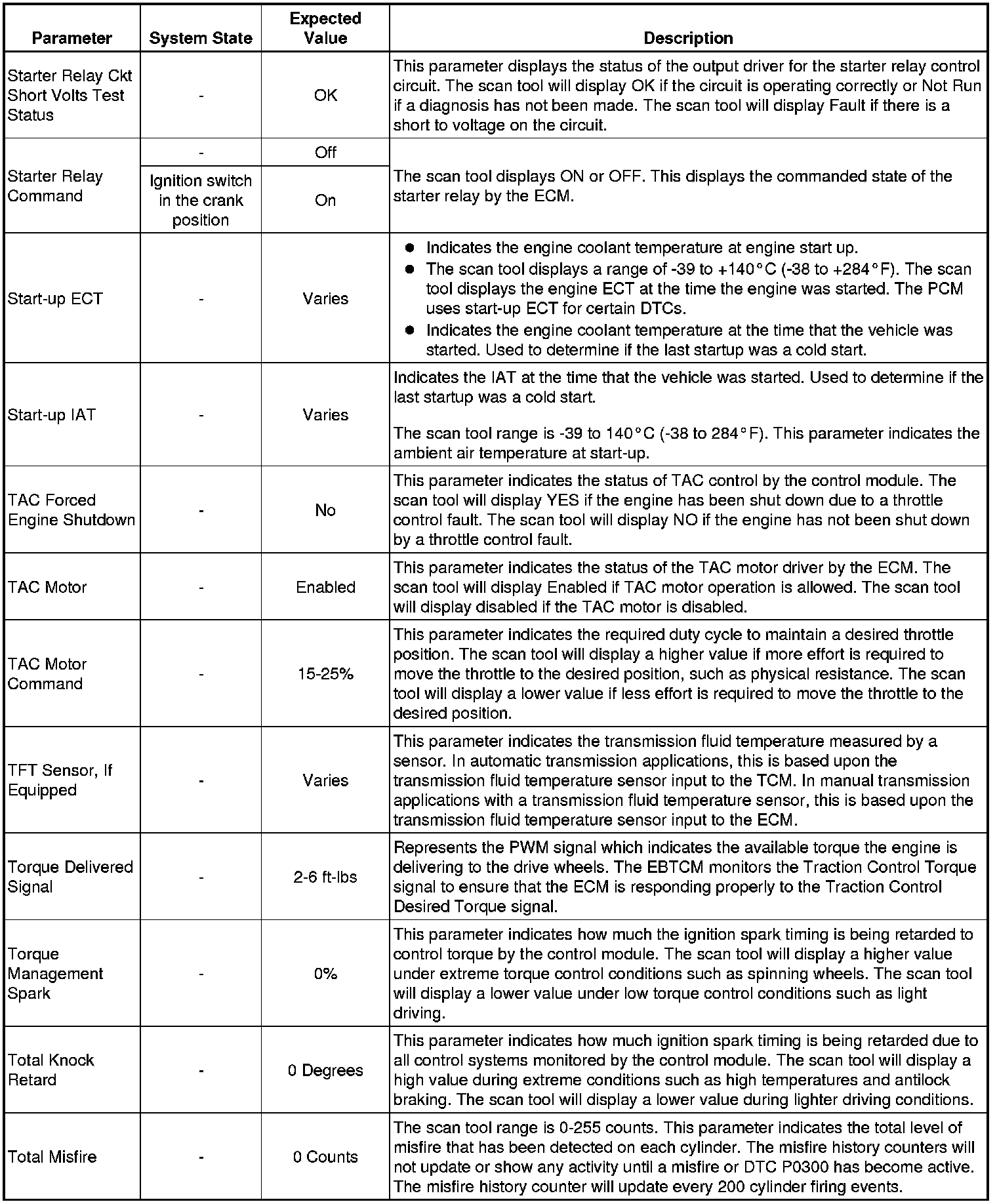 Only the parameters listed below are referenced in this service manual for use in diagnosis. If all values are within the typical range described below, refer to Symptoms - Engine Controls (- Symptoms - Engine Controls) for diagnosis.