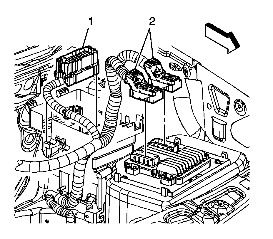 1. Connect the engine wiring harness electrical connectors (2) to the ECM. Reposition the ECM out of the way.