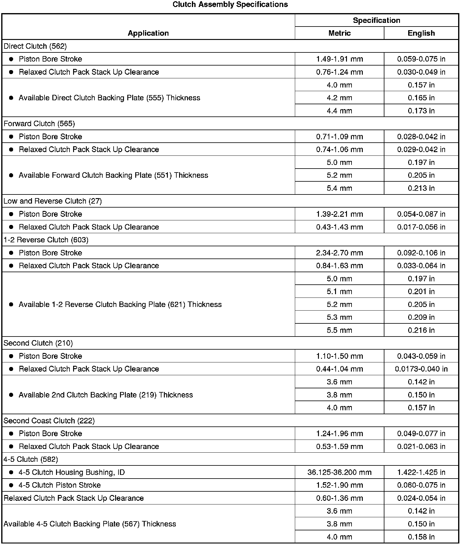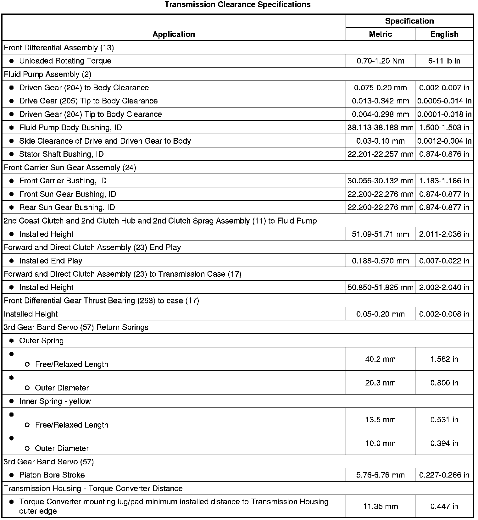 Transmission Clearance Specifications