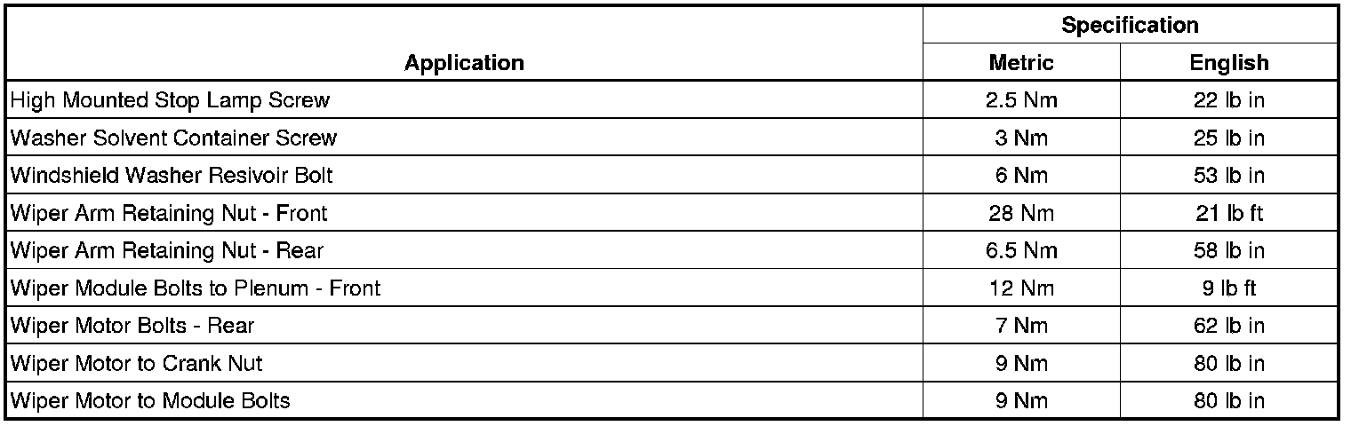 Wiper and Washer Systems: Specifications
