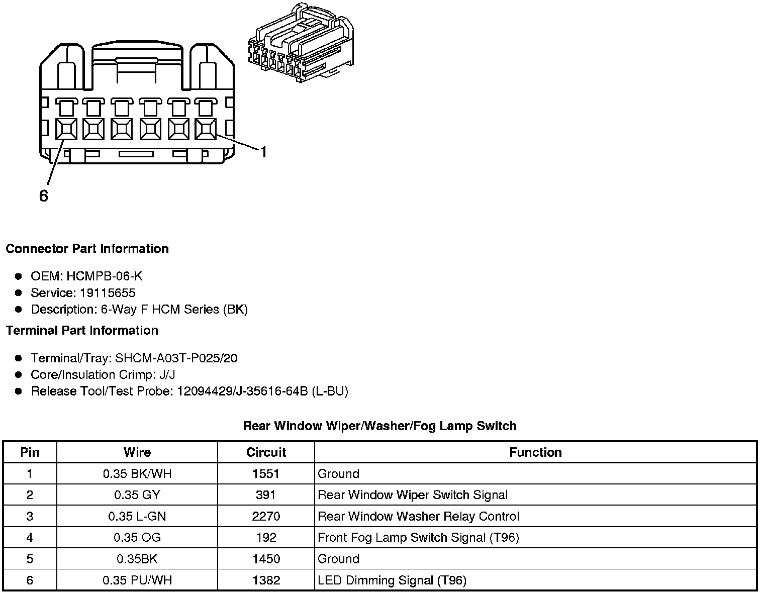 Rear Window Wiper/Washer/Fog Lamp Switch