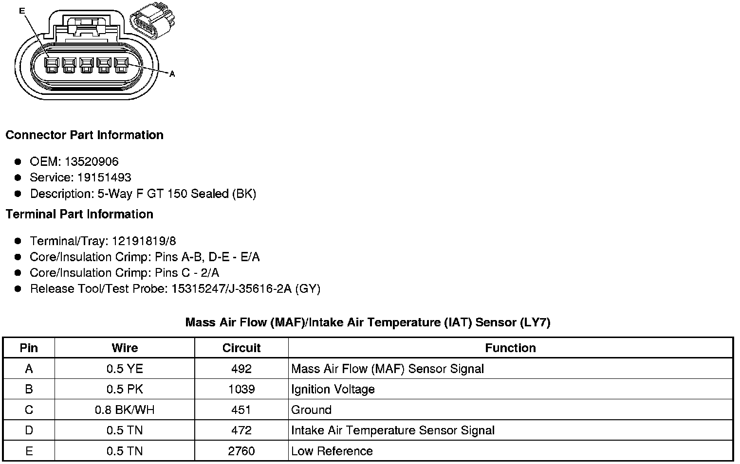 Mass Air Flow (MAF)/Intake Air Temperature (IAT) Sensor (LY7)
