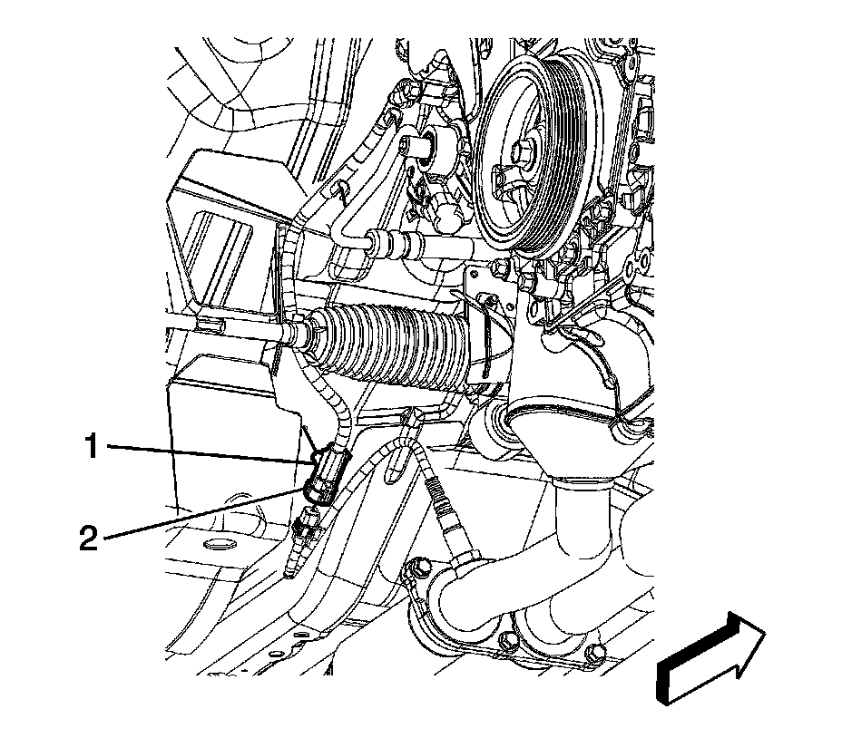 2. Disconnect the heated oxygen sensor (HO2S) electrical connector (2) from the engine wiring harness electrical connector.