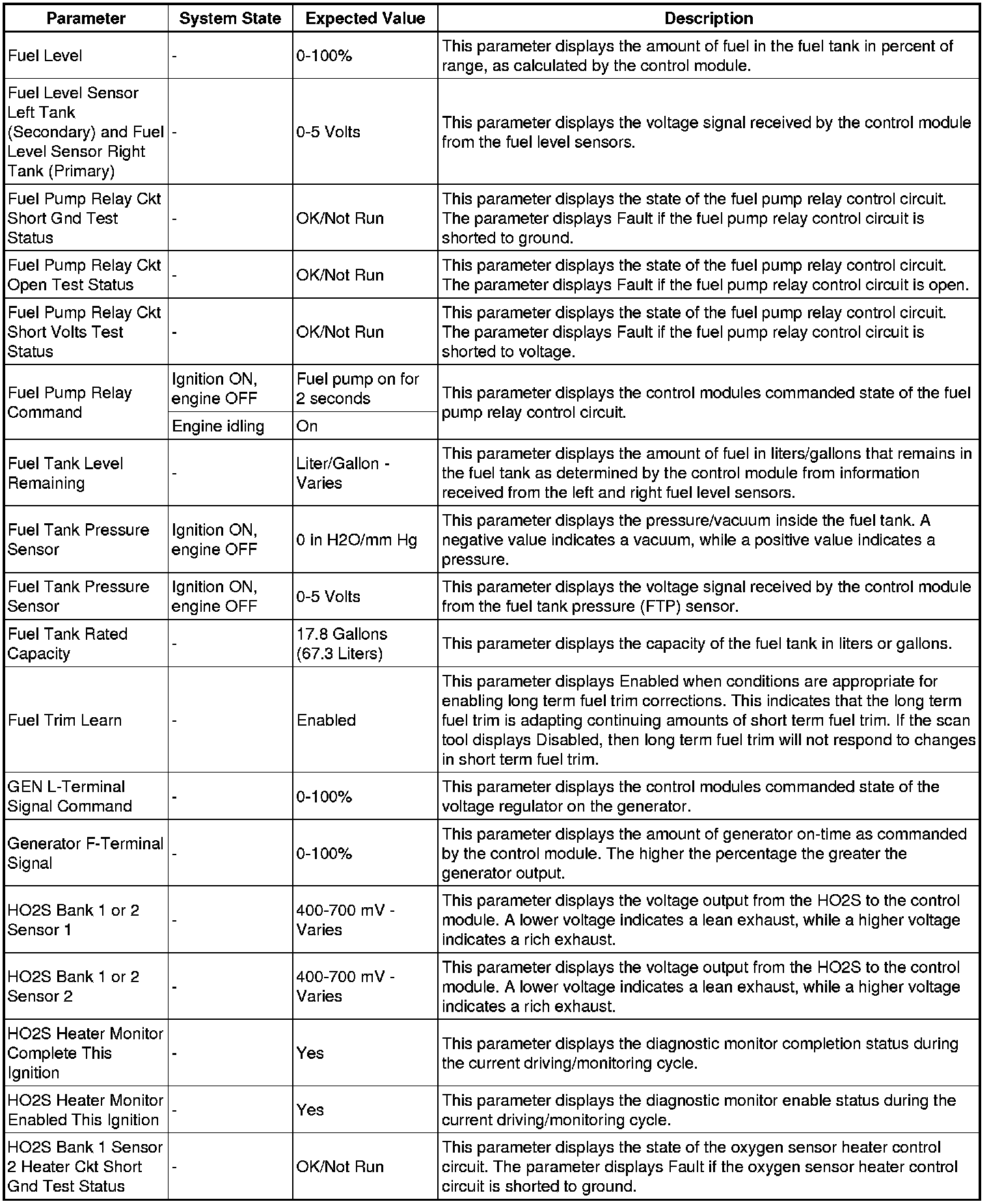 The Engine Control Module Scan Tool Data List contains all engine-related parameters that are available on the scan tool. The list is arranged in alphabetical order. A given parameter may appear in any one of the data lists, and in some cases may appear more than once, or in more than one data list in order to group certain related parameters together.