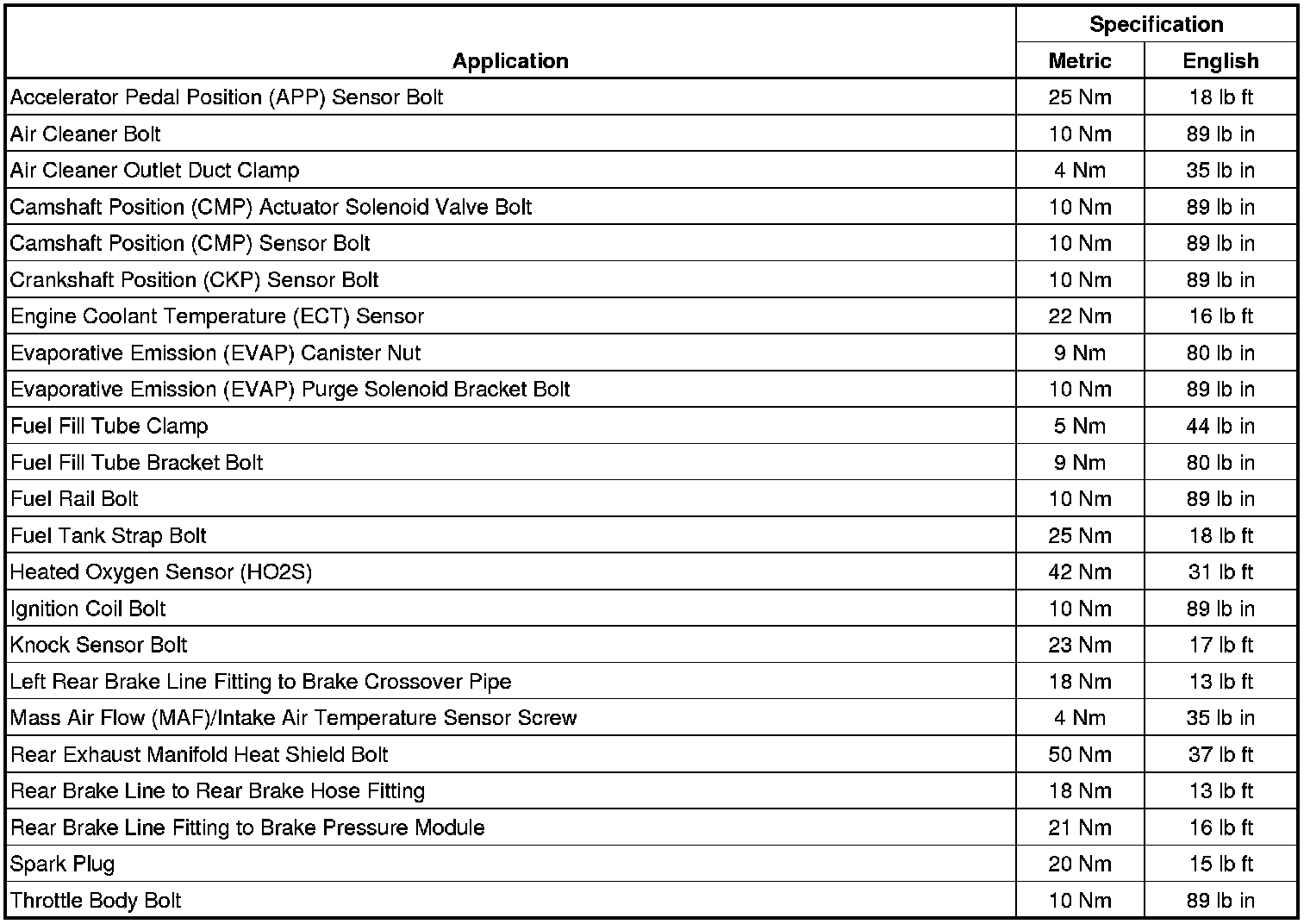 Fastener Tightening Specifications