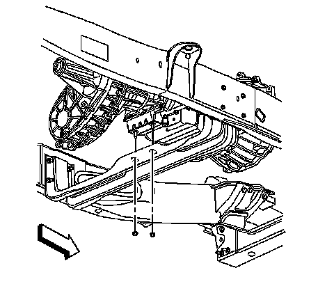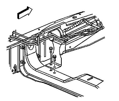 4.Remove the fuel filter bracket to transmission support crossmember retaining bolts.