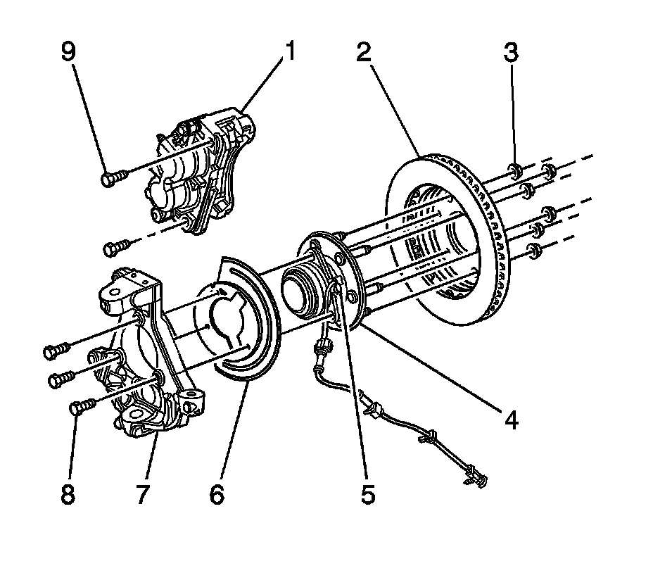 2. Remove the tire and wheel assembly. Refer to Tire and Wheel Removal and Installation (Service and Repair).