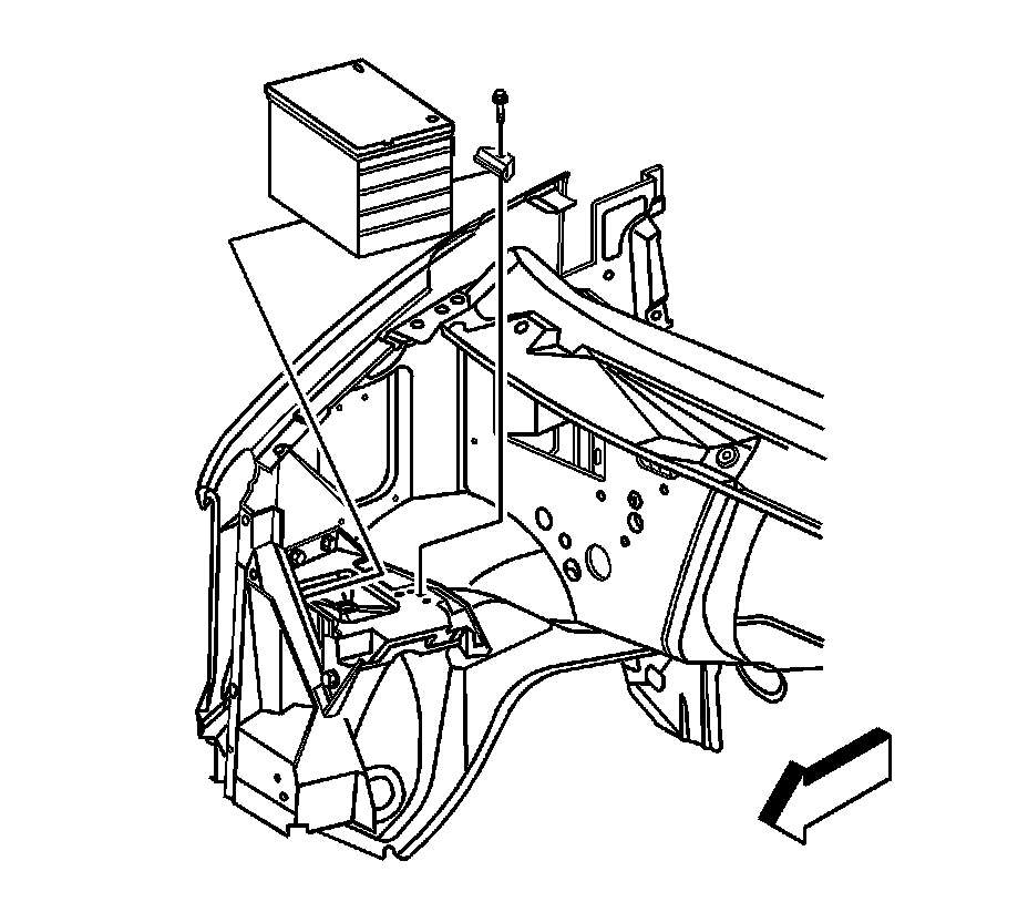 2. Install the battery hold-down retainer and bolt and tighten to 18 Nm (12 lb ft).