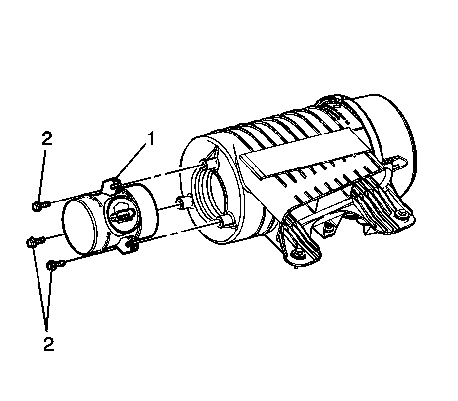 2. Install the MAF/IAT sensor bolts (2) and tighten to9 Nm (80 lb in).