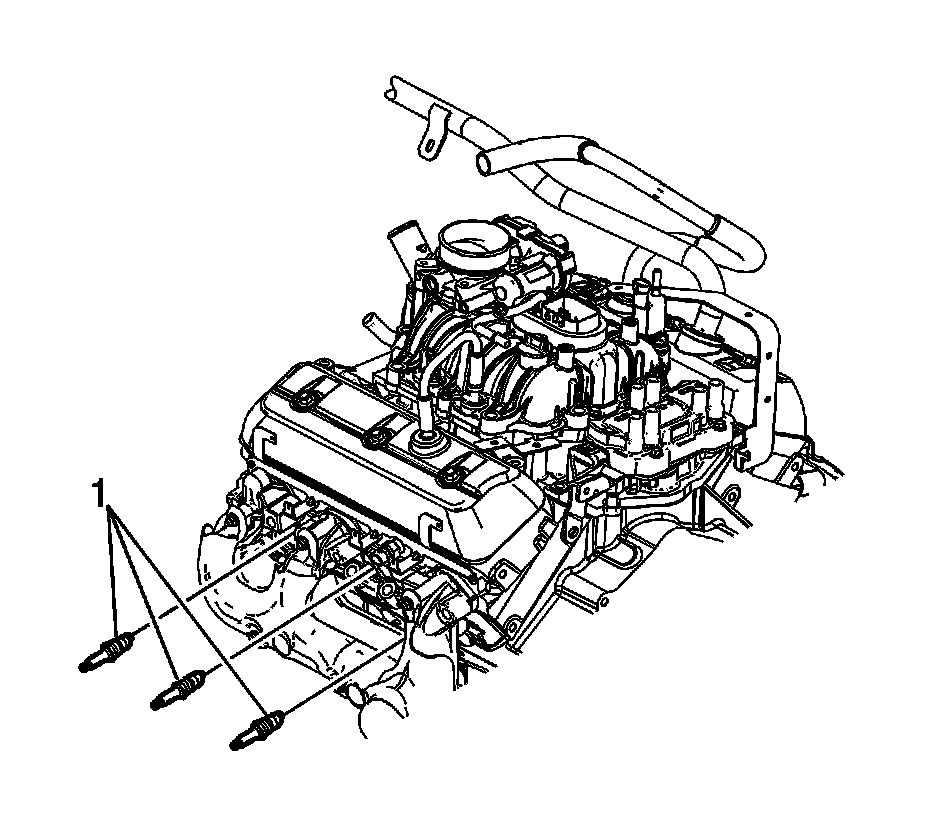 6. Remove the appropriate left side spark plug (1). If removing more than 1 plug, place each plug in a tray marked with the corresponding cylinder number.