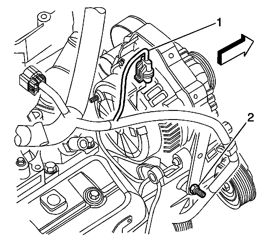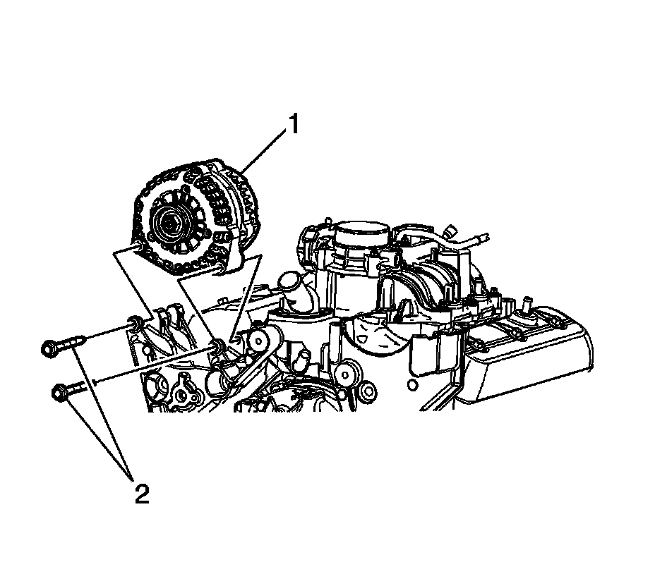 1. Install the generator (1) and bolts (2) and tighten to 50 Nm (37 lb ft).