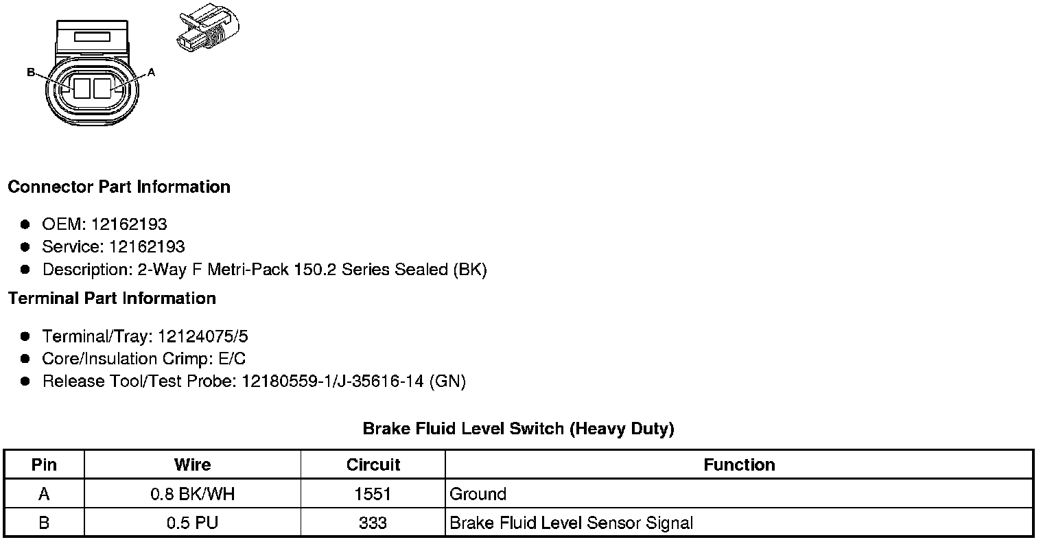 Brake Fluid Level Switch (Heavy Duty)