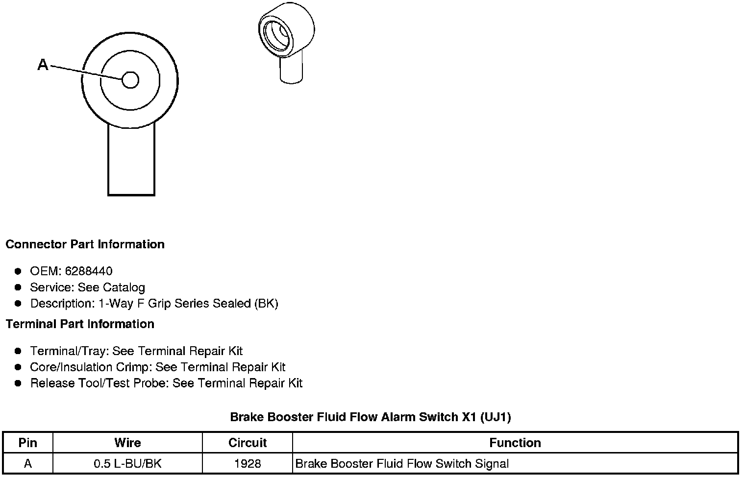 Brake Booster Fluid Flow Alarm Switch X1 (UJ1)