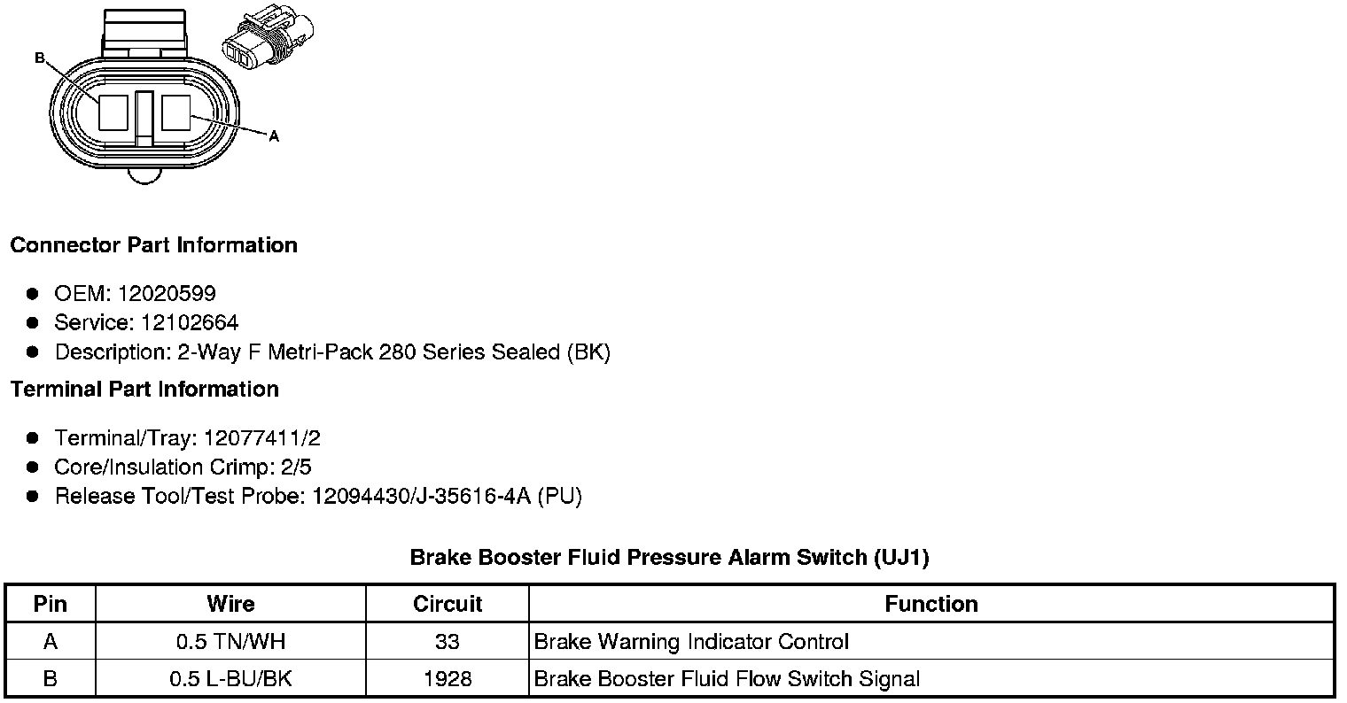 Brake Booster Fluid Pressure Alarm Switch (UJ1)
