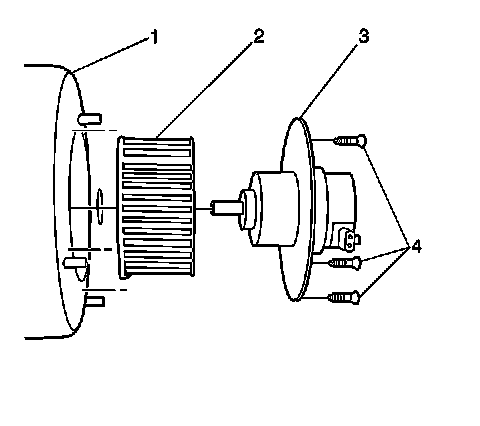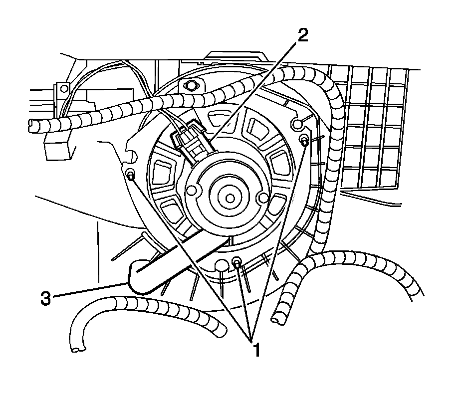 4. Install the blower motor retaining screws (1) and tighten to2 Nm (18 lb in).