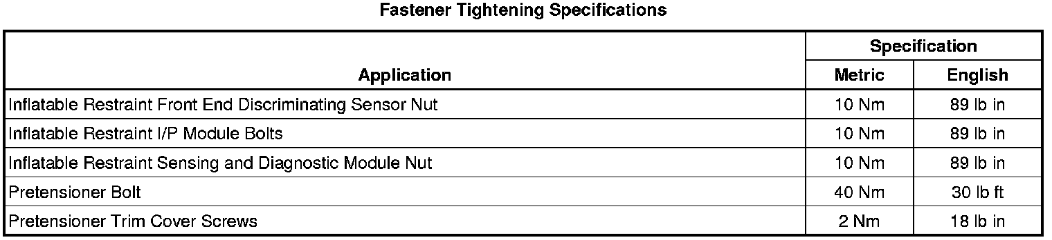 Fastener Tightening Specifications
