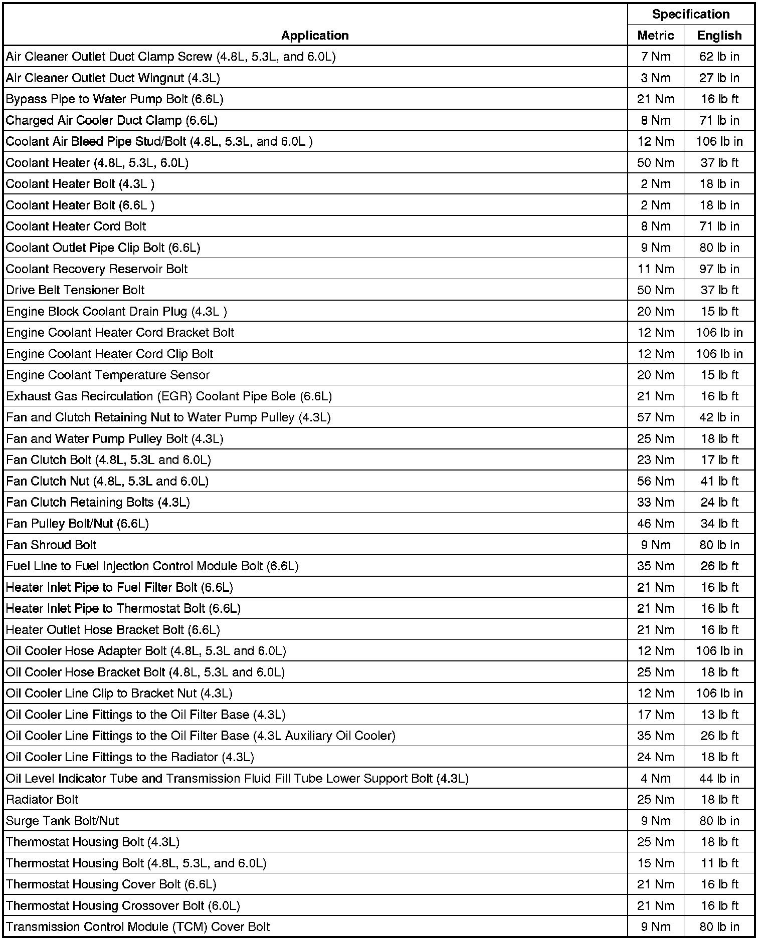 Fastener Tightening Specifications