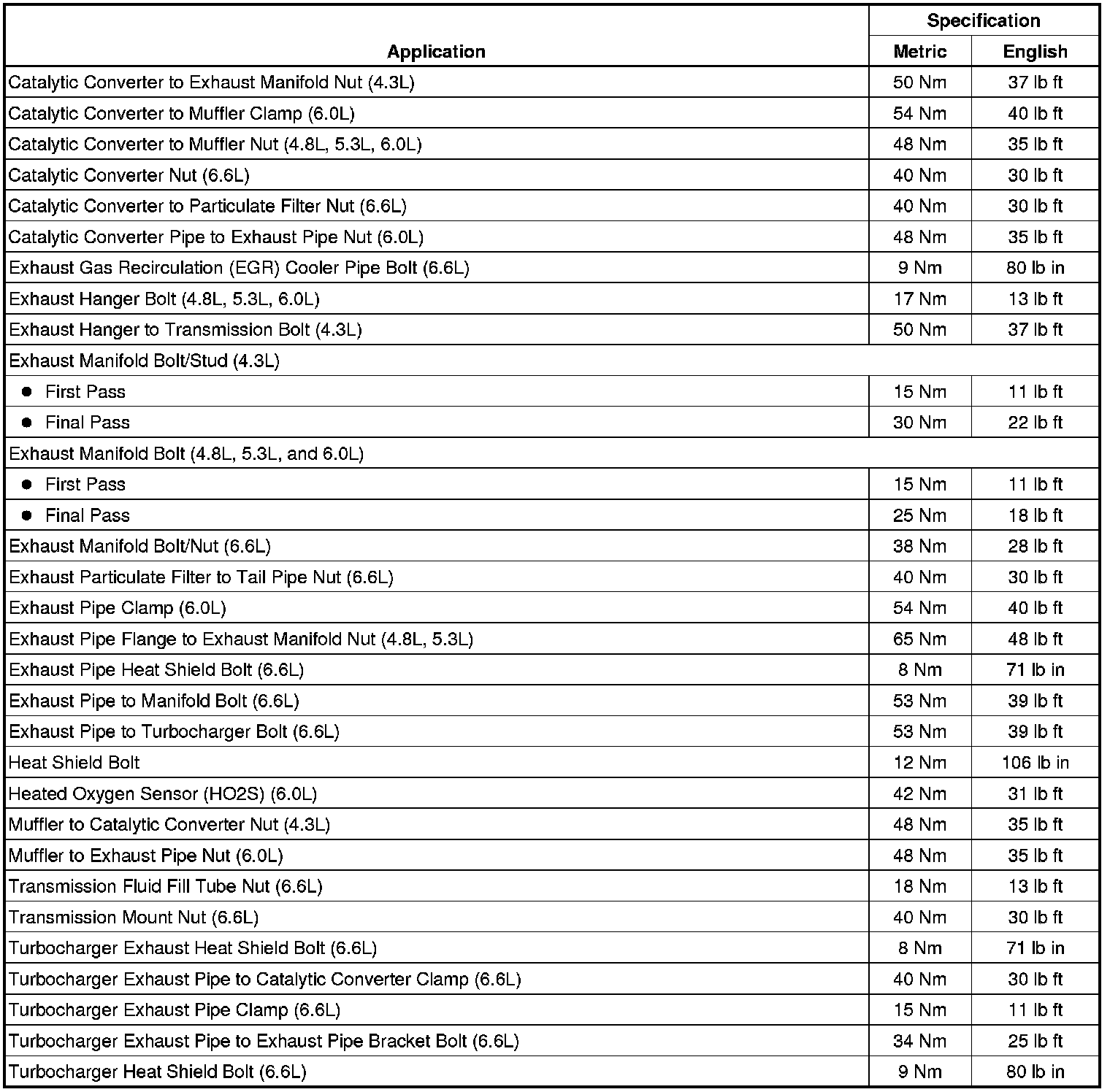 Fastener Tightening Specifications