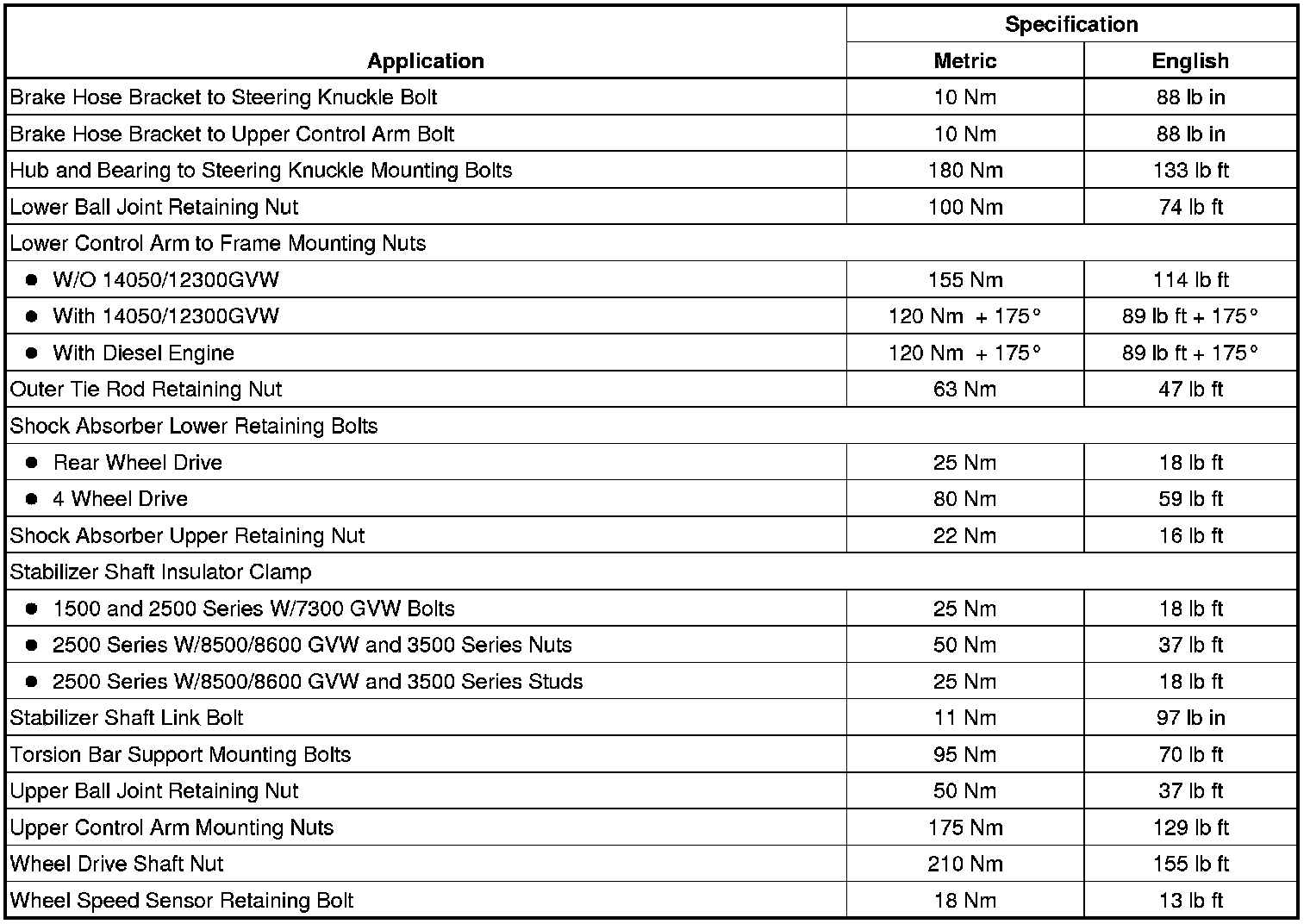 Fastener Tightening Specifications