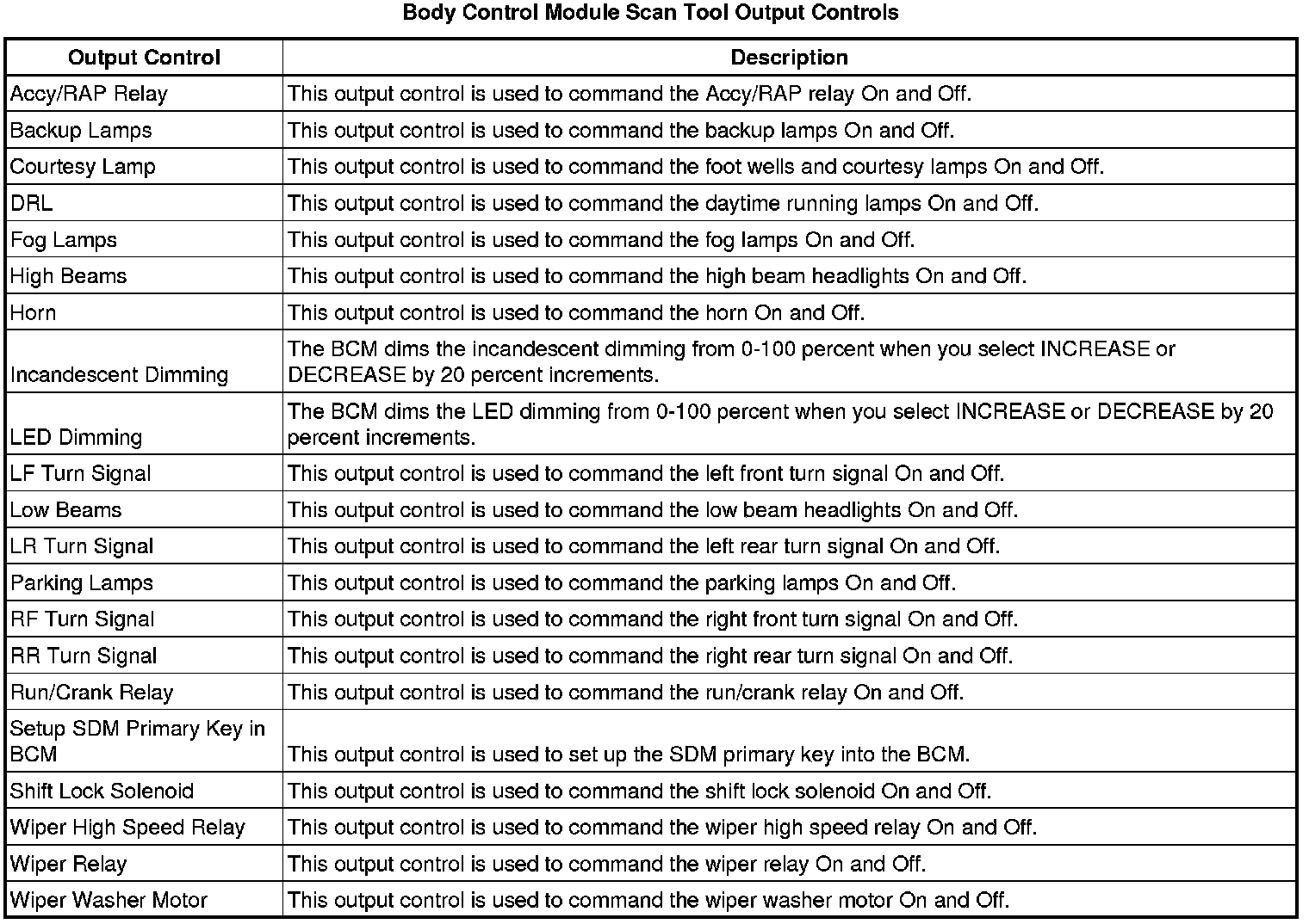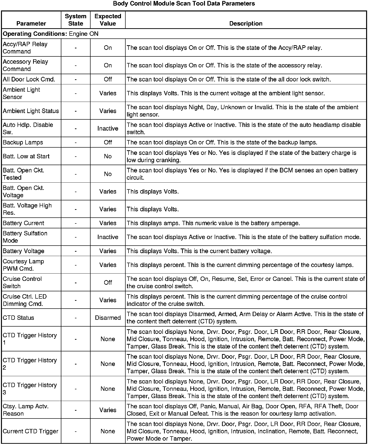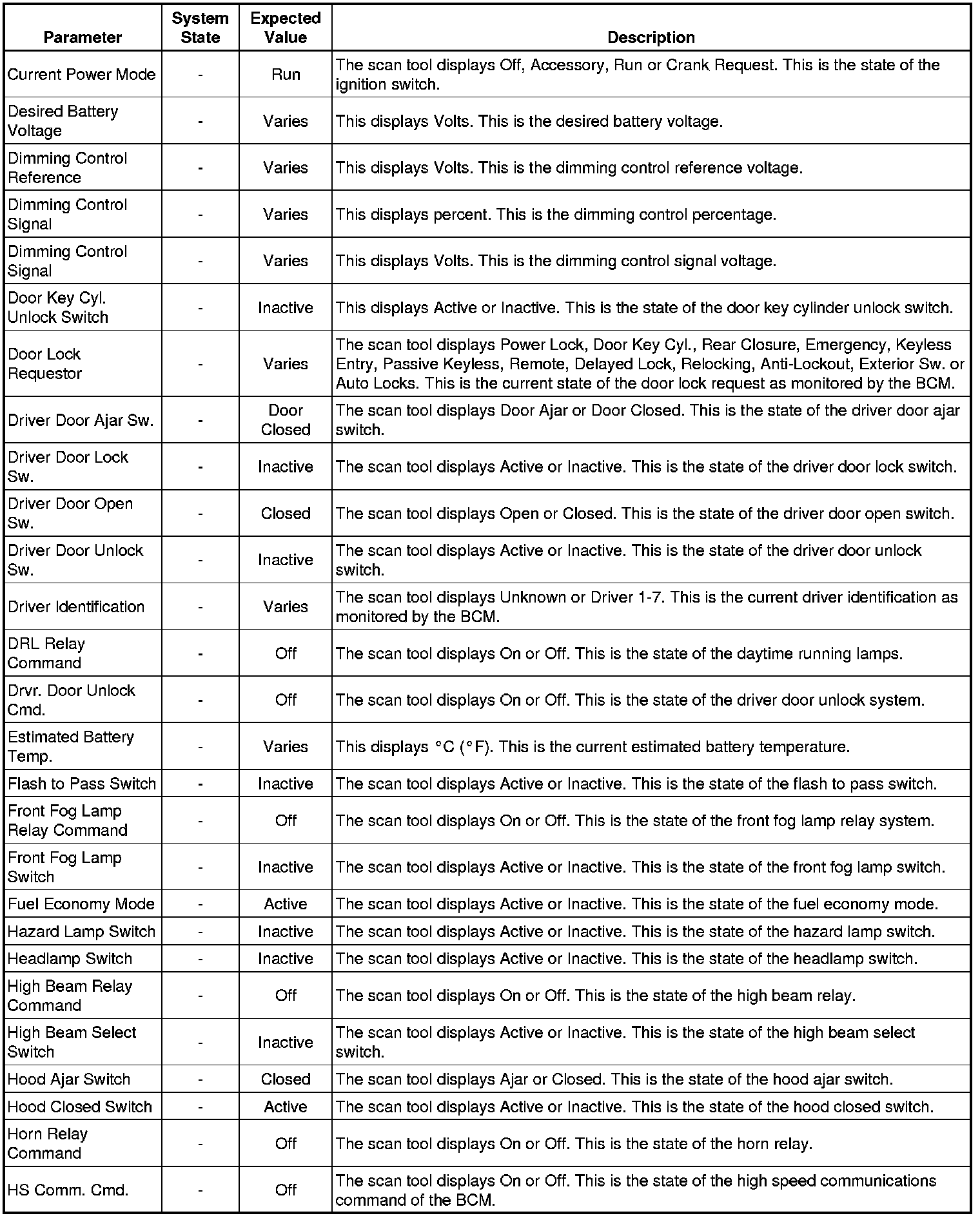 Body Control Module Scan Tool Information