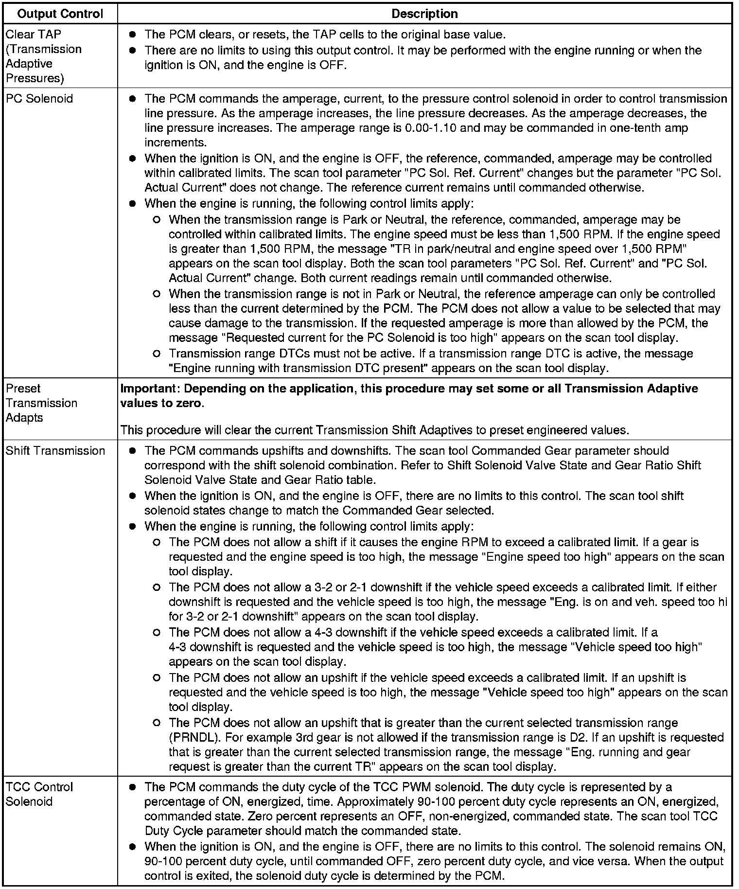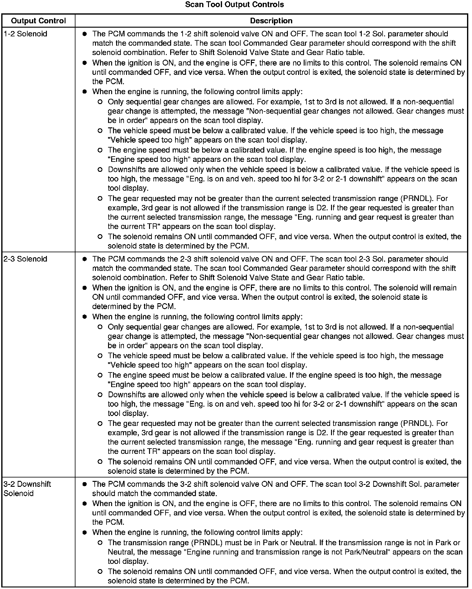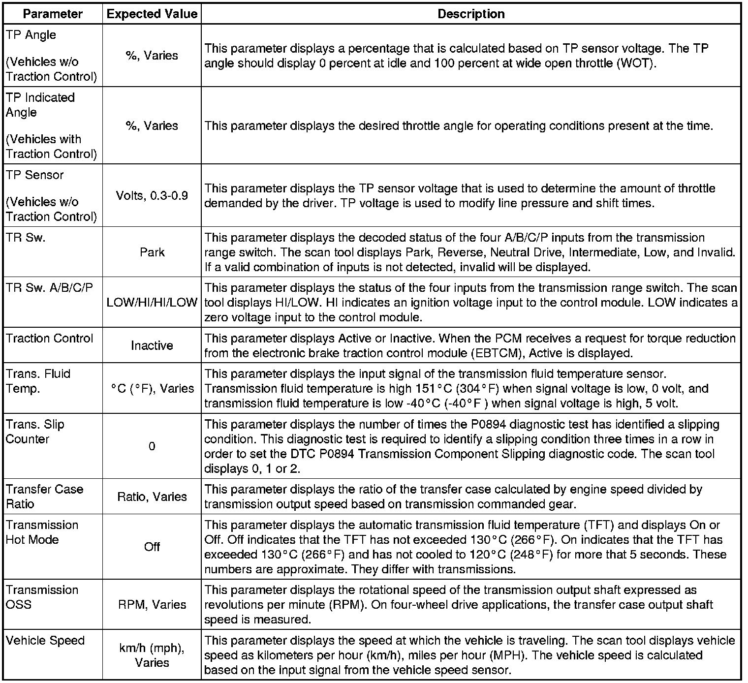The Transmission Control Module Scan Tool Data List contains all transmission related parameters that are available on the scan tool. The list is arranged in alphabetical order. A given parameter may appear in any one of the data lists, and in some cases may appear more than once, or in more than one data list in order to group certain related parameters together.