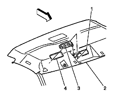 2. Remove the front control switch (3) by unsnapping the retainers from the headliner.