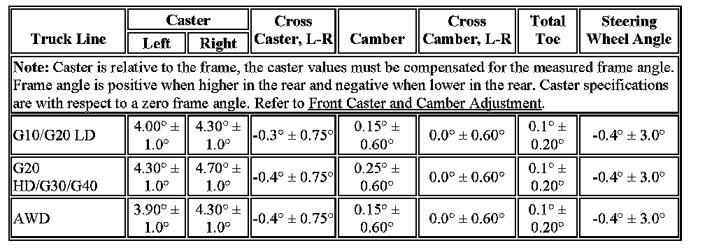 Wheel Alignment Specifications