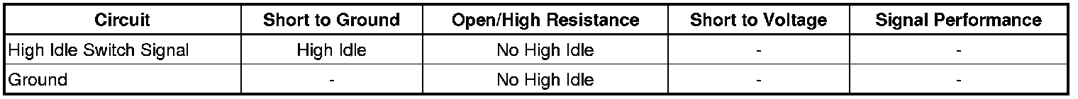Ignition ON, observe the scan tool High Idle switch parameter while exercising the switch. The reading should change between ON/OFF.