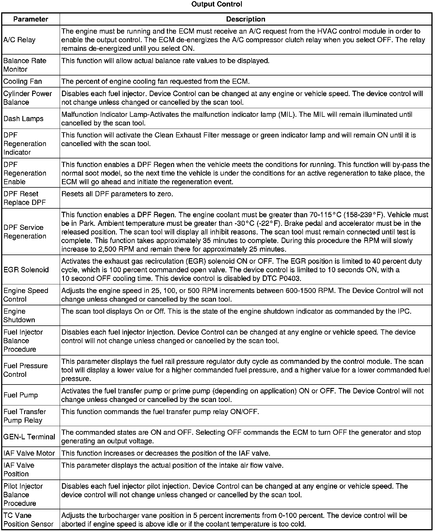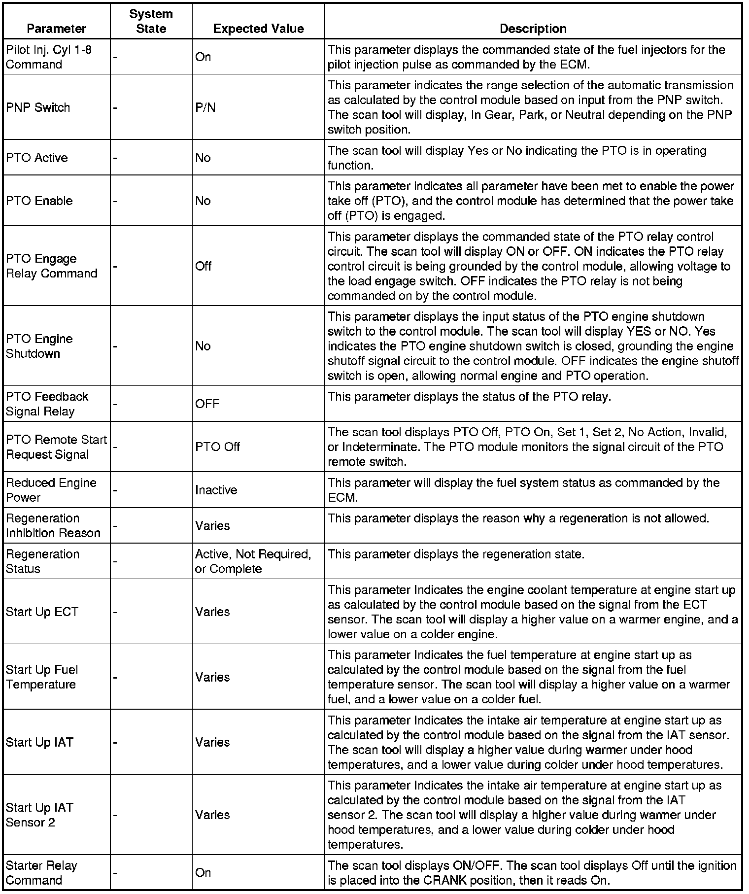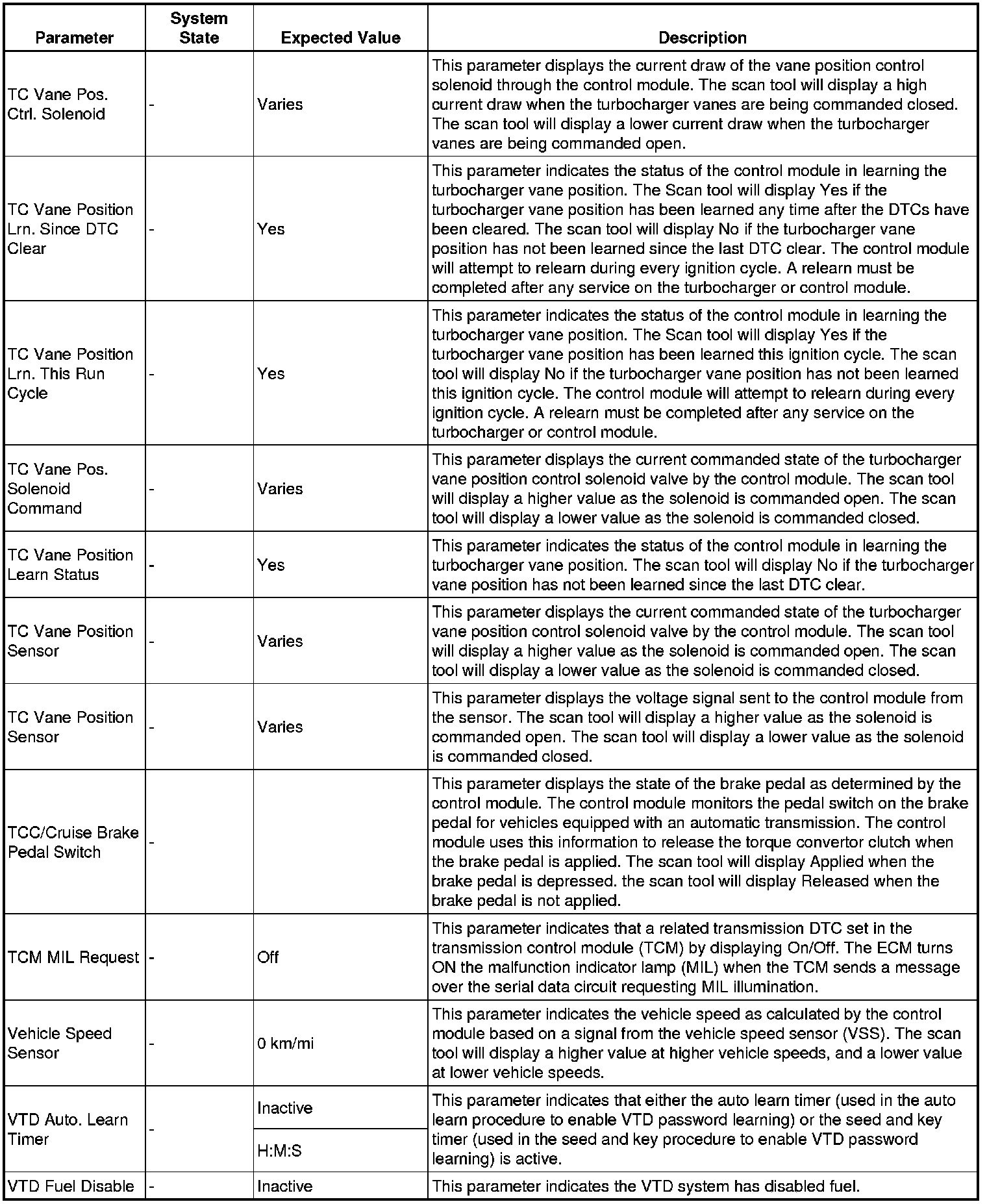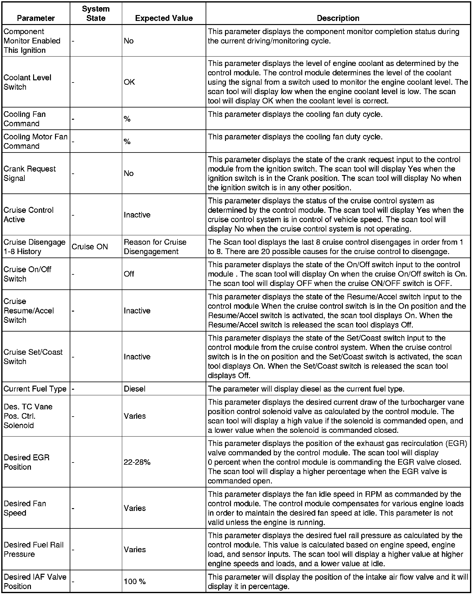 Only the parameters listed below are referenced in this service manual for use in diagnosis.