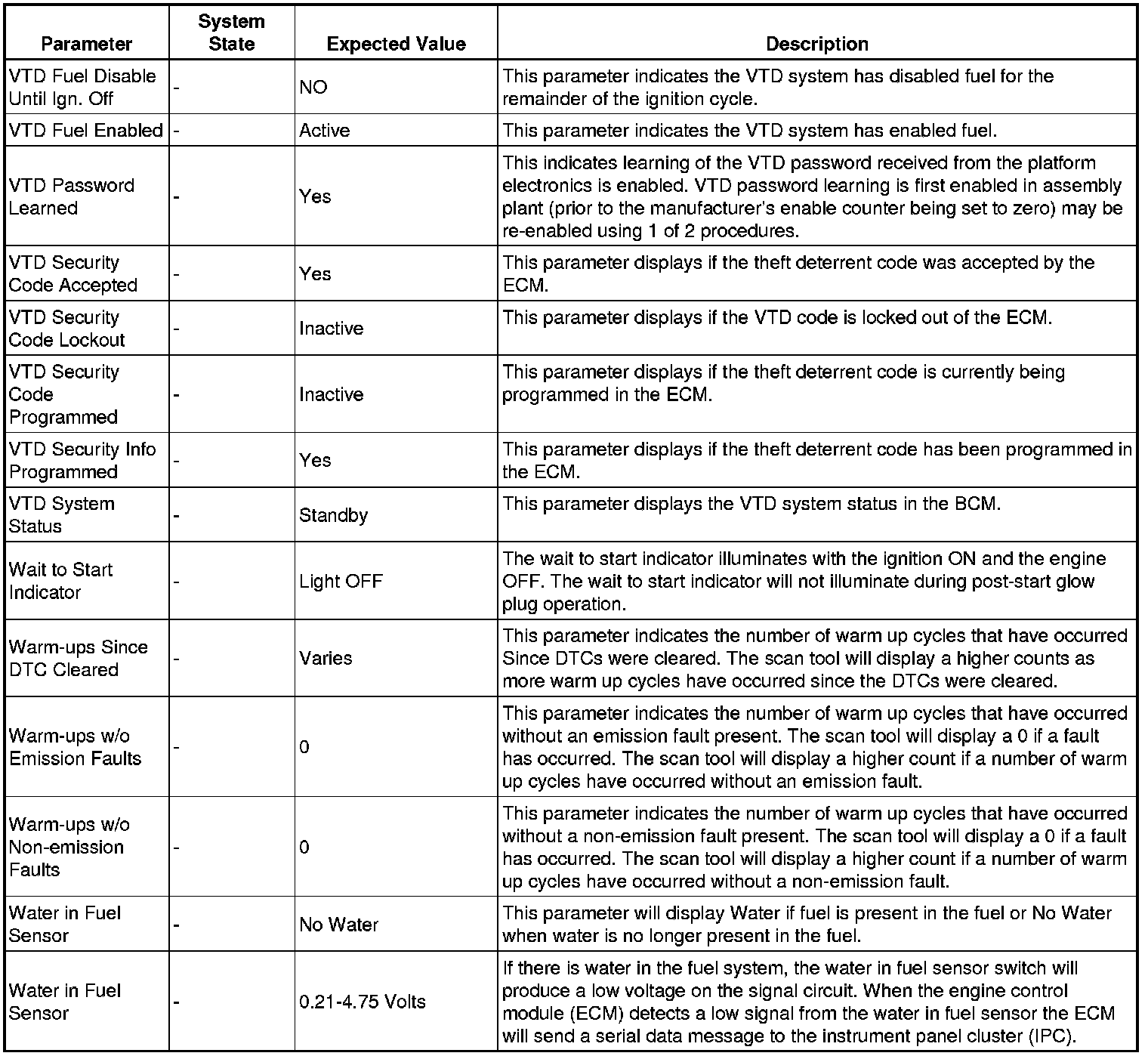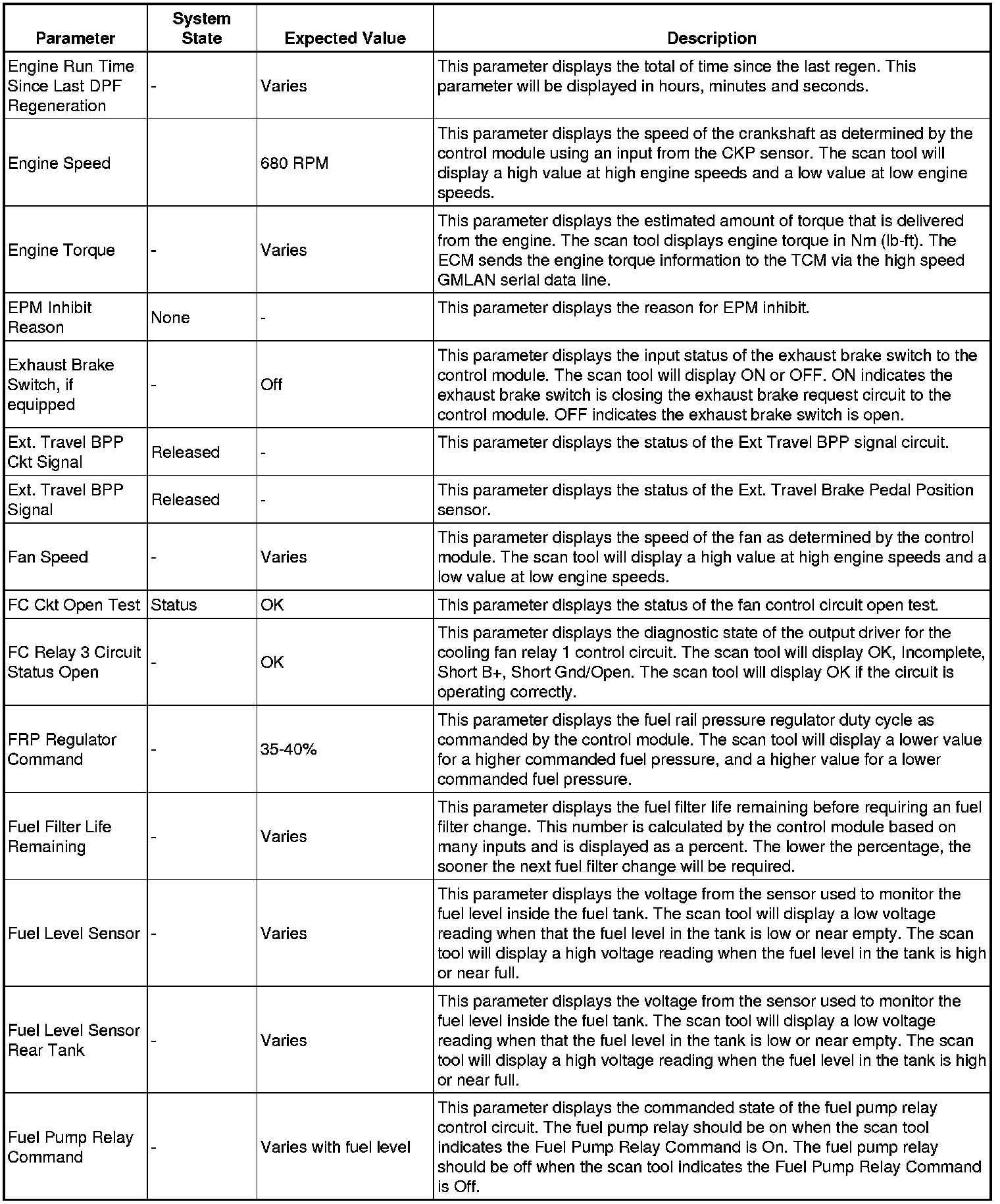 The Engine Control Module Scan Tool Data List contains all engine-related parameters that are available on the scan tool. The list is arranged in alphabetical order. A given parameter may appear in any one of the data lists, and in some cases may appear more than once, or in more than one data list in order to group certain related parameters together.
