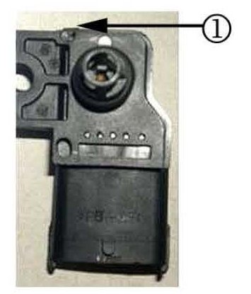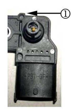 Inspect the TMAP sensor when mounted on the charge air duct. Note how the TMAP sensor is not mounted flush on the duct (1).