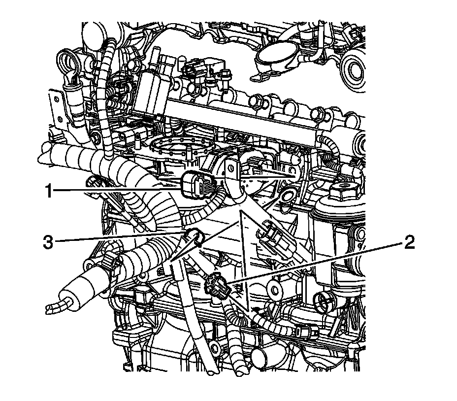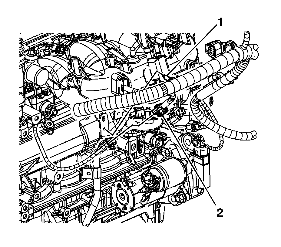 1. Disconnect the engine wiring harness electrical connector (2) from the front knock sensor, if required.