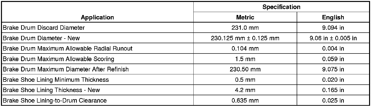 Drum Brake Component Specifications