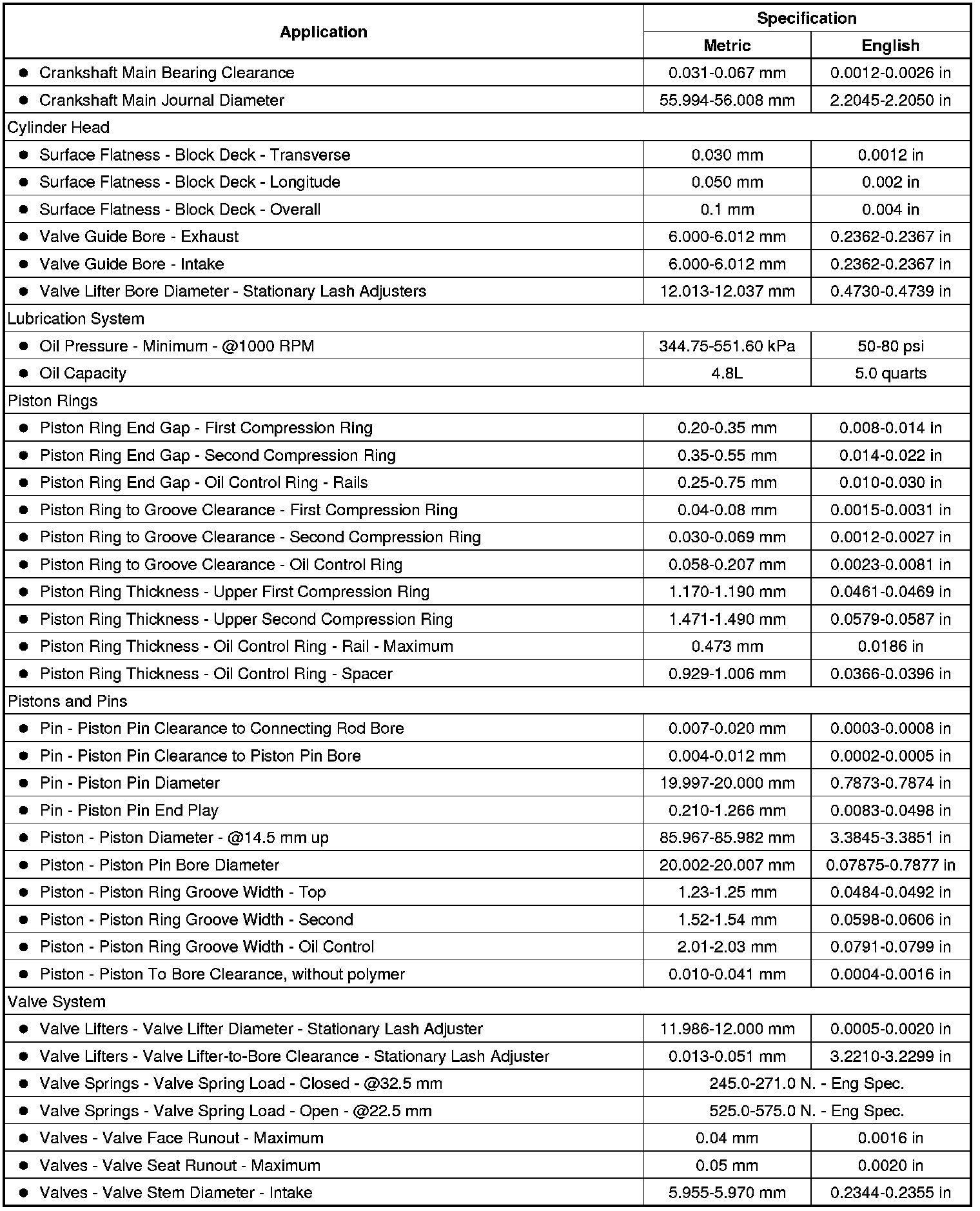 Engine Mechanical Specifications (2.2L)