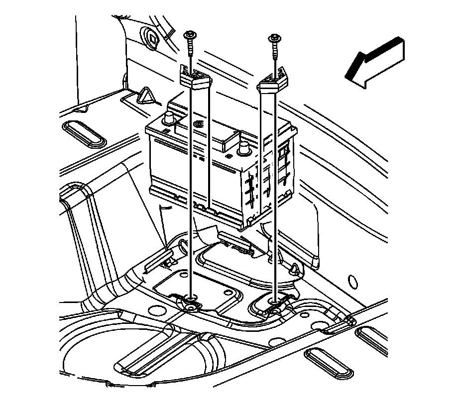 3. Install the battery hold down retainer bolts and tighten to 25 Nm (18 lb ft).